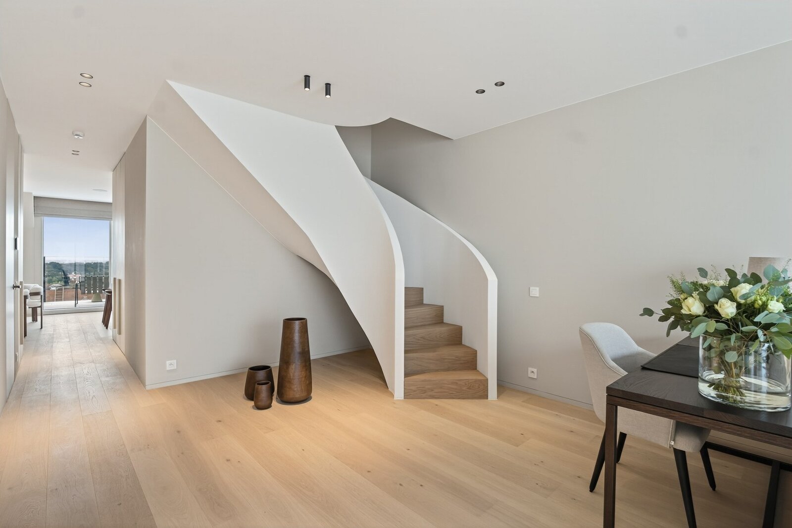 Deze duplex-penthouse van 154 m² met 15 m² terras is een architecturaal statement bovenop residentie Milenka. Een unieke kans om te wonen op hoog niveau – letterlijk én figuurlijk – met uitzicht op zee én het groene hinterland van Knokke-Het Zoute.