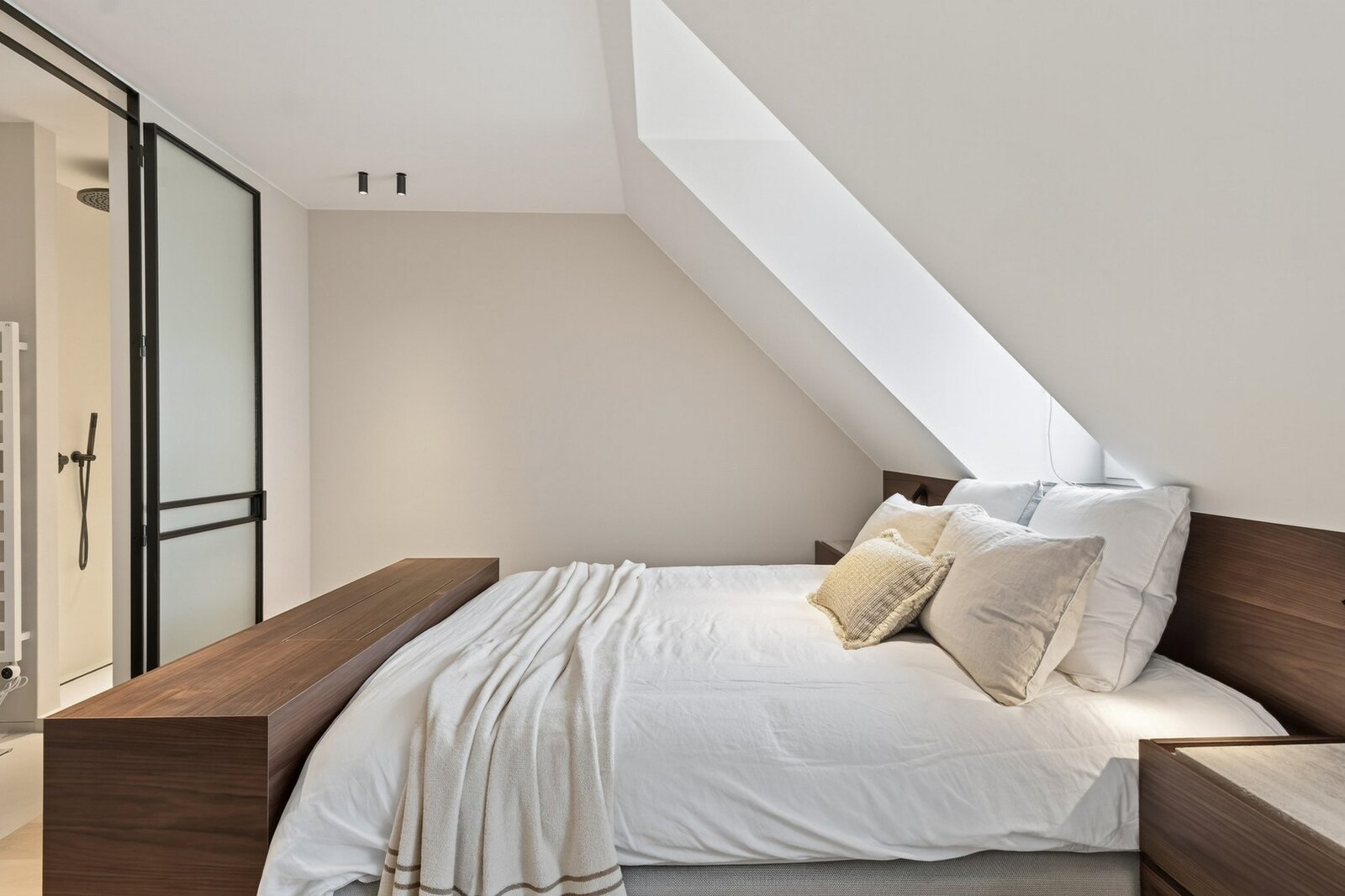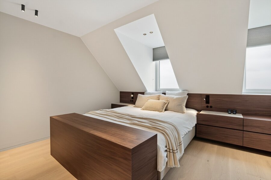 De masterbedroom beschikt over een ensuite badkamer, terwijl slaapkamer 2 en 3 een badkamer delen. De Skyframe ramen, natuurstenen accenten, ingefreesde details en harmonie tussen hedendaags en tijdloos design maken van deze penthouse een woonervaring die zelden op de markt komt.