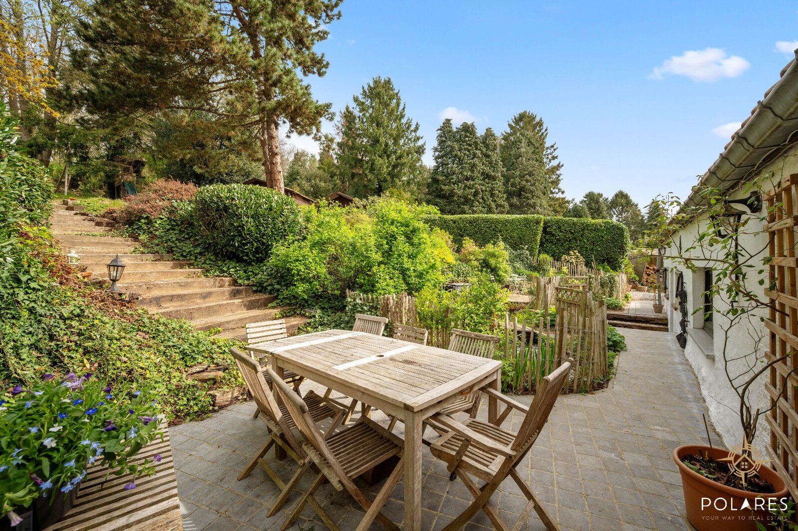 De buitenruimte is zonder twijfel een van de grootste troeven: een prachtig tuin waar natuur en privacy hand in hand gaan.