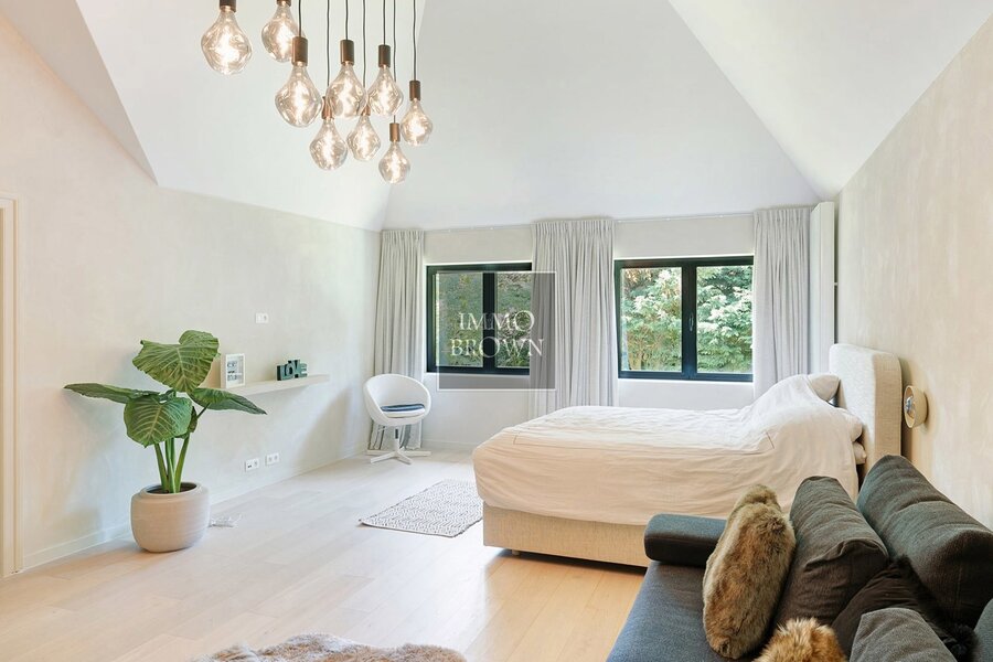 De villa verwelkomt je met een ruimtelijke inkomhal voorzien van vestiaire en gastentoilet. De lichte en royale leefruimte sluit naadloos aan op het terras en de perfect onderhouden tuin met prachtig zwembad – ideaal voor ontspannen momenten in alle privacy. De aparte TV-hoek creëert een gezellige sfeer. De open keuken is volledig uitgerust met topapparatuur, waaronder een quooker, oven, microgolf- en stoomoven, en sluit aan op een praktische bijkeuken.
