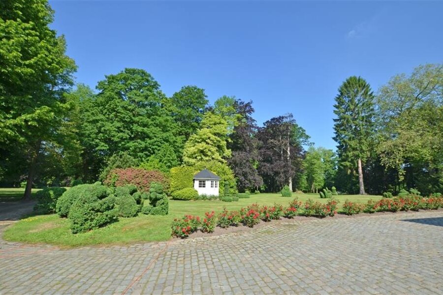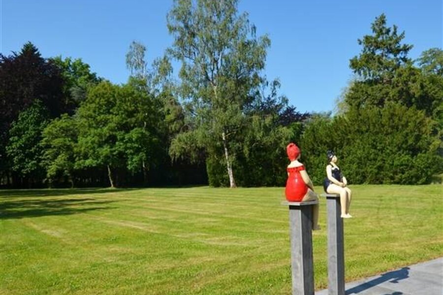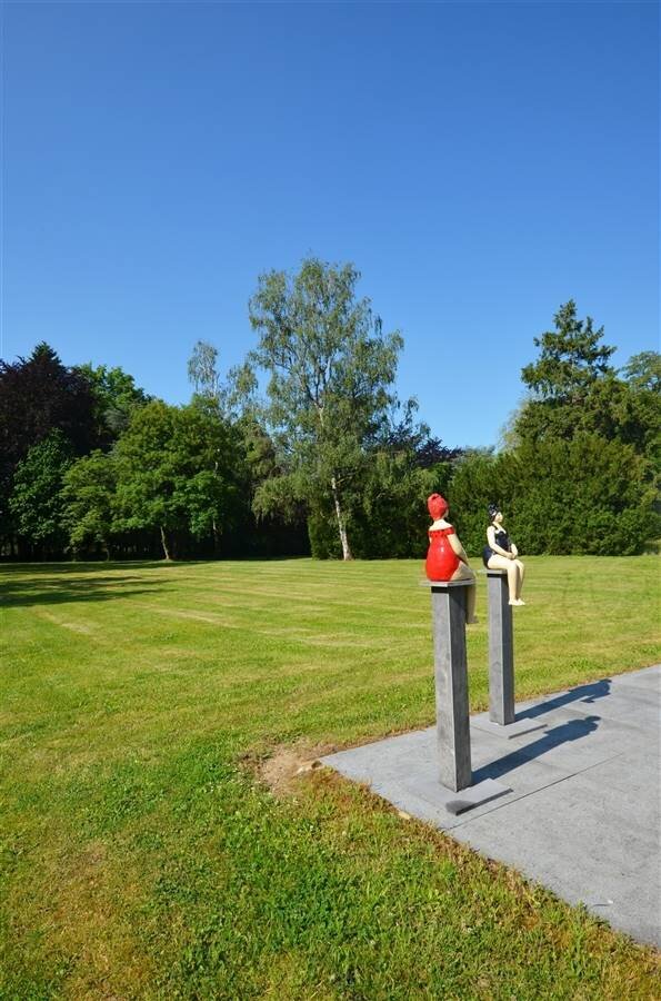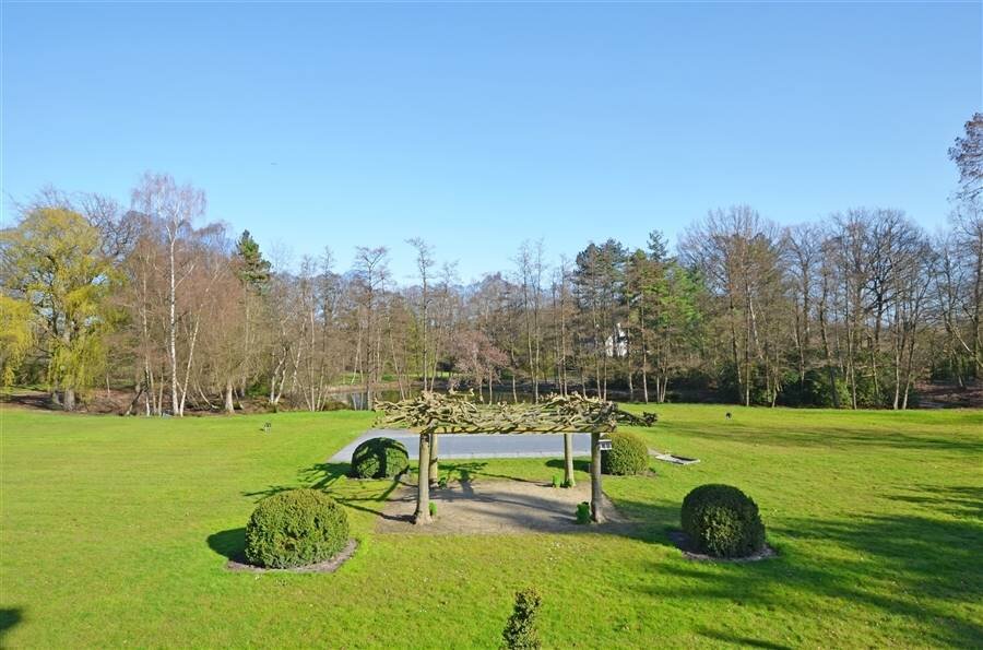 Vanuit de hele woning heeft men overal zicht op de prachtige parktuin met vijver. Bovendien is het ook voorzien van een gravel tennisplein en een buitenzwembad waar er in volledige privacy genoten kan worden.