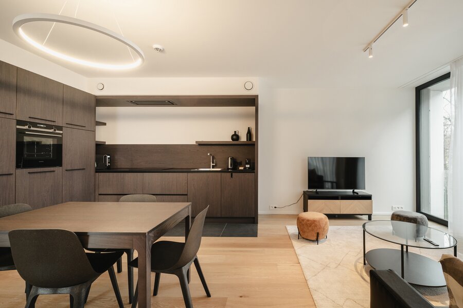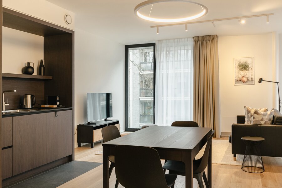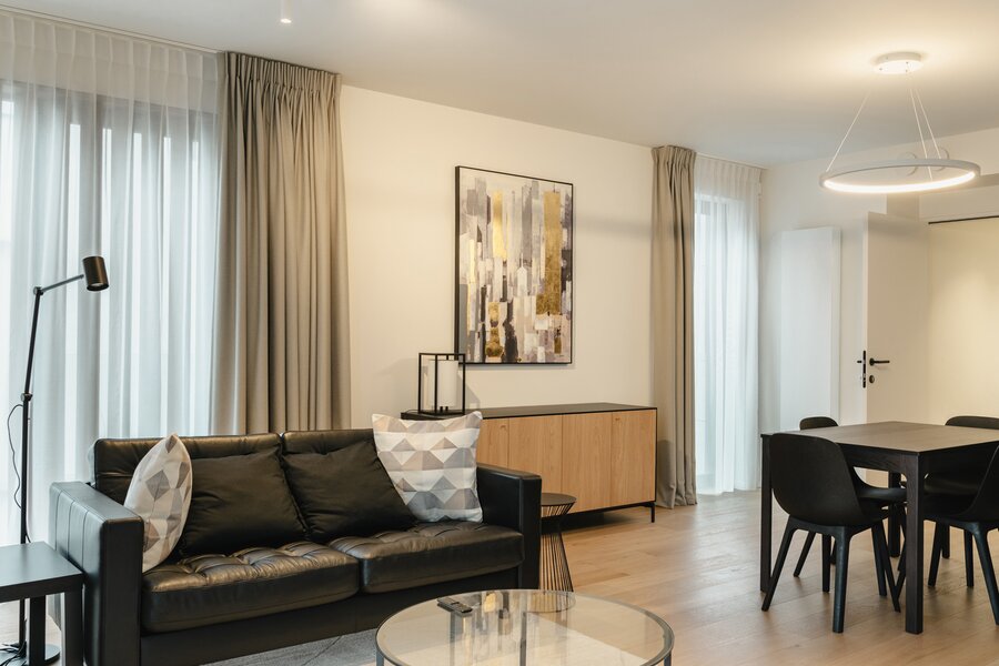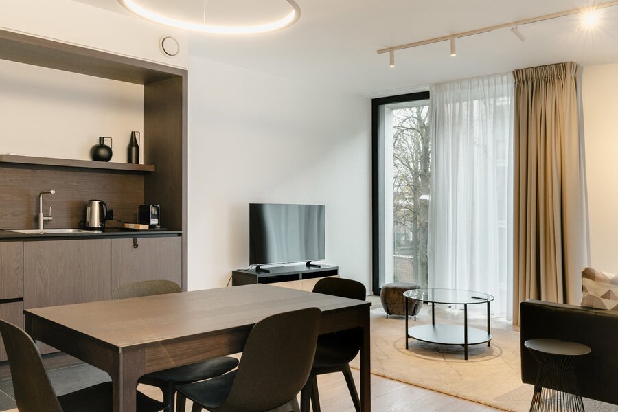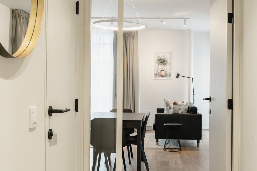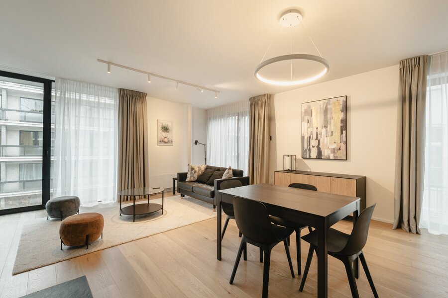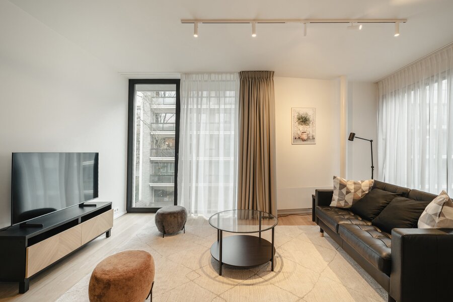 Ideaal gelegen in de Europese wijk, op een steenworp afstand van het Jubelpark en de vele winkels, biedt dit gemeubileerde appartement met voorzieningen een bruto vloeroppervlakte van circa 75 m² (conform het Energieprestatiecertificaat - EPC) en beschikt het over een slaapkamer in een gloednieuw gebouw voor eerste bewoning.