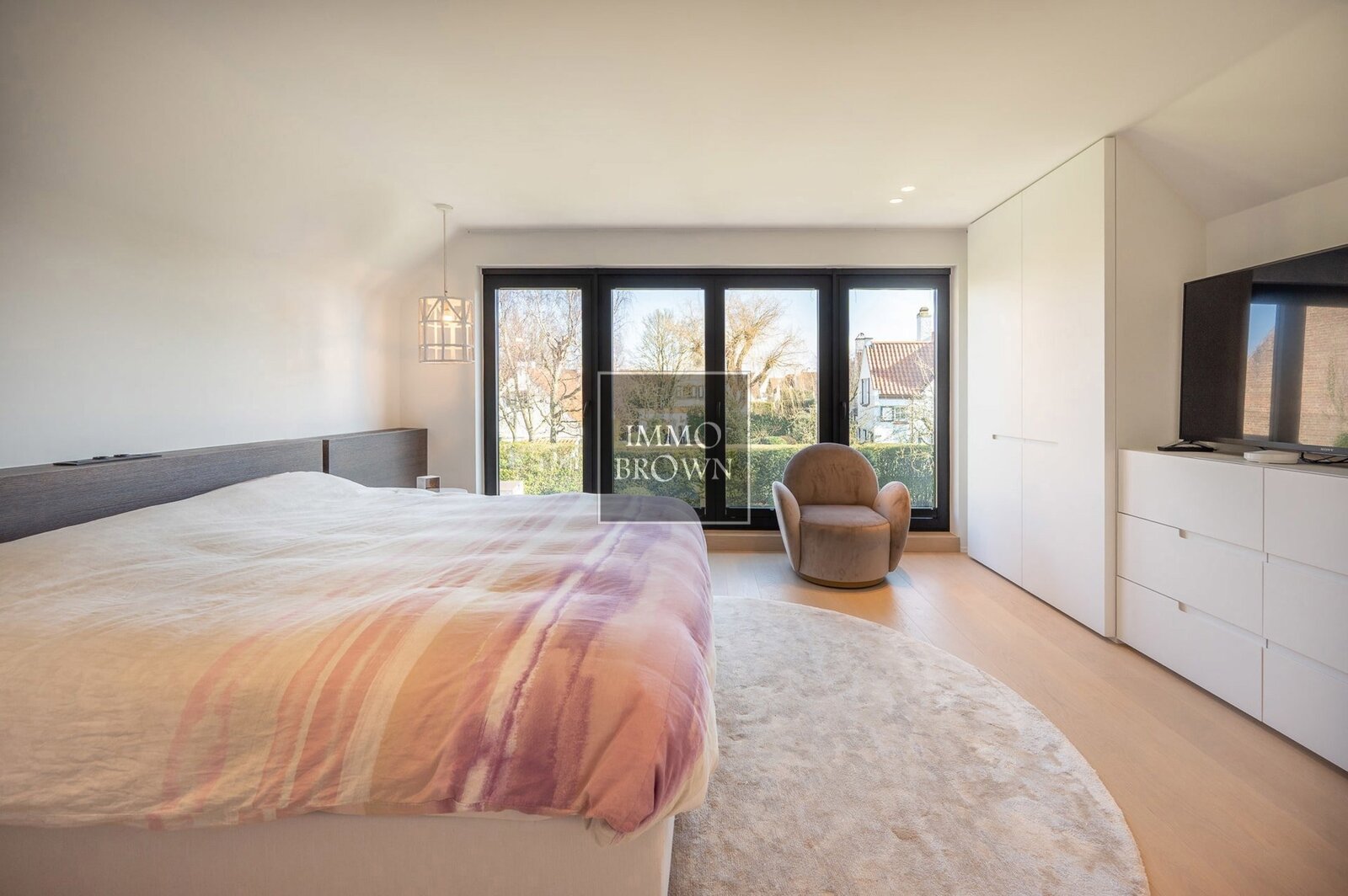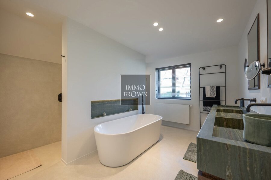 Op de eerste verdieping bevindt zich de riante masterbedroom, voorzien van een ruime dressing en een elegante en-suite badkamer met dubbele lavabo, ligbad, inloopdouche en toilet. Daarnaast zijn er drie volwaardige slaapkamers, elk uitgerust met een eigen badkamer of douchekamer, wat garant staat voor optimaal comfort en privacy voor bewoners en gasten.