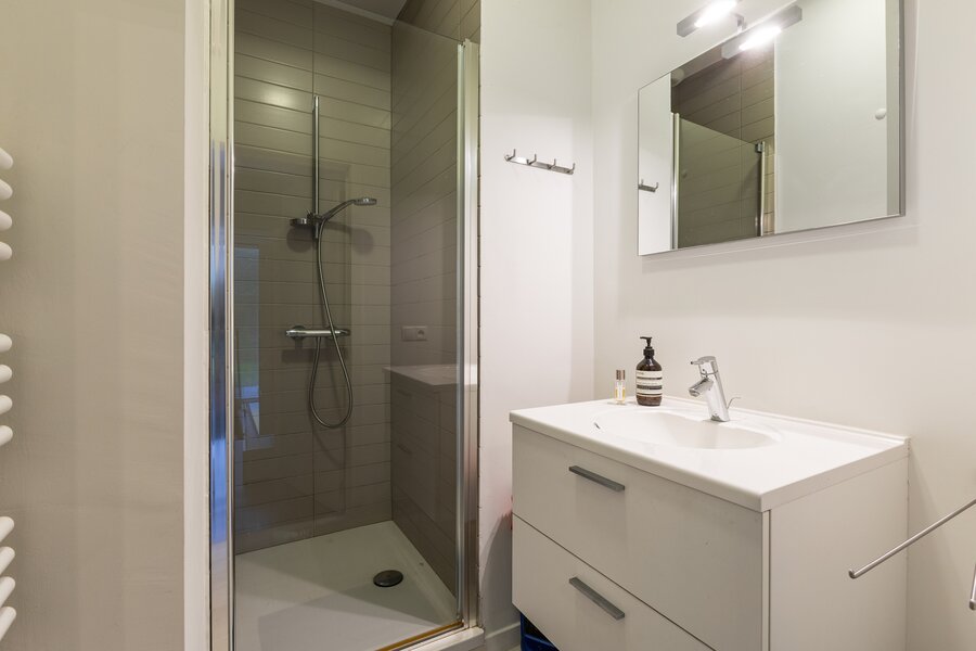 Inkomhal met vestiaire, gastentoilet, comfortabele leefruimte met vrij zicht, volledig ingerichte open keuken met aansluitend de eethoek, praktische berging/wasplaats, eerste volwaardige slaapkamer met ensuite douchekamer, tweede volwaardige slaapkamer, aparte badkamer met ligbad, zonnig terras met tuin.