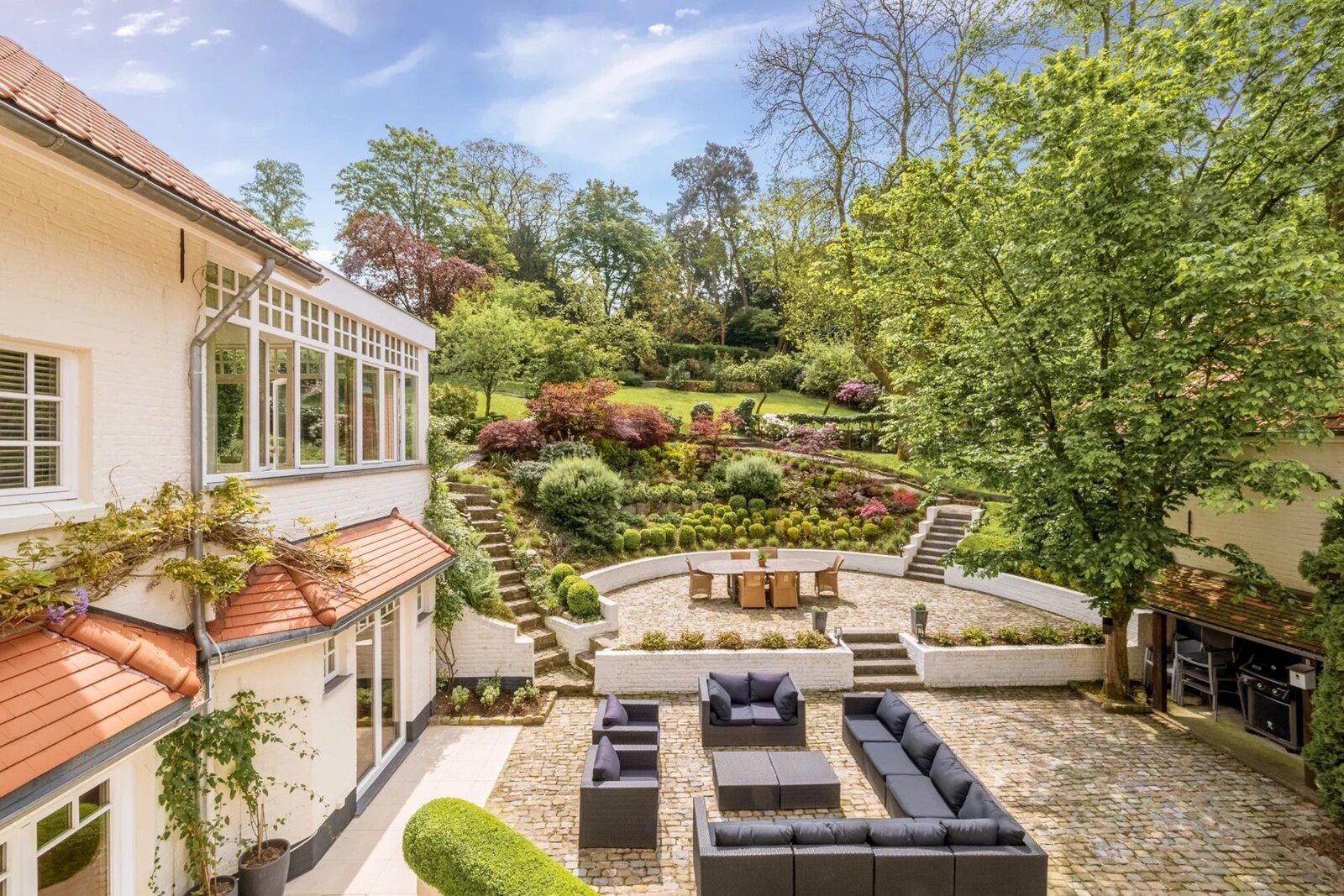 Gelegen tussen Lasne en La Hulpe, in een groene omgeving dicht bij voorzieningen, charmante cottage villa van ±350 m² bewoonbare oppervlakte, gebouwd in 1925 en volledig gerenoveerd in 2008. Het pand opent naar een bebost perceel van 23 are op het zuiden, zonder inkijk, en beschikt over een bijgebouw met garages en een grote multifunctionele ruimte.