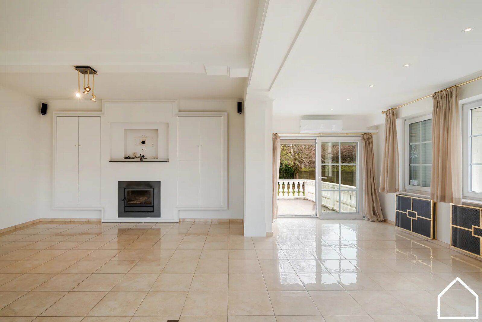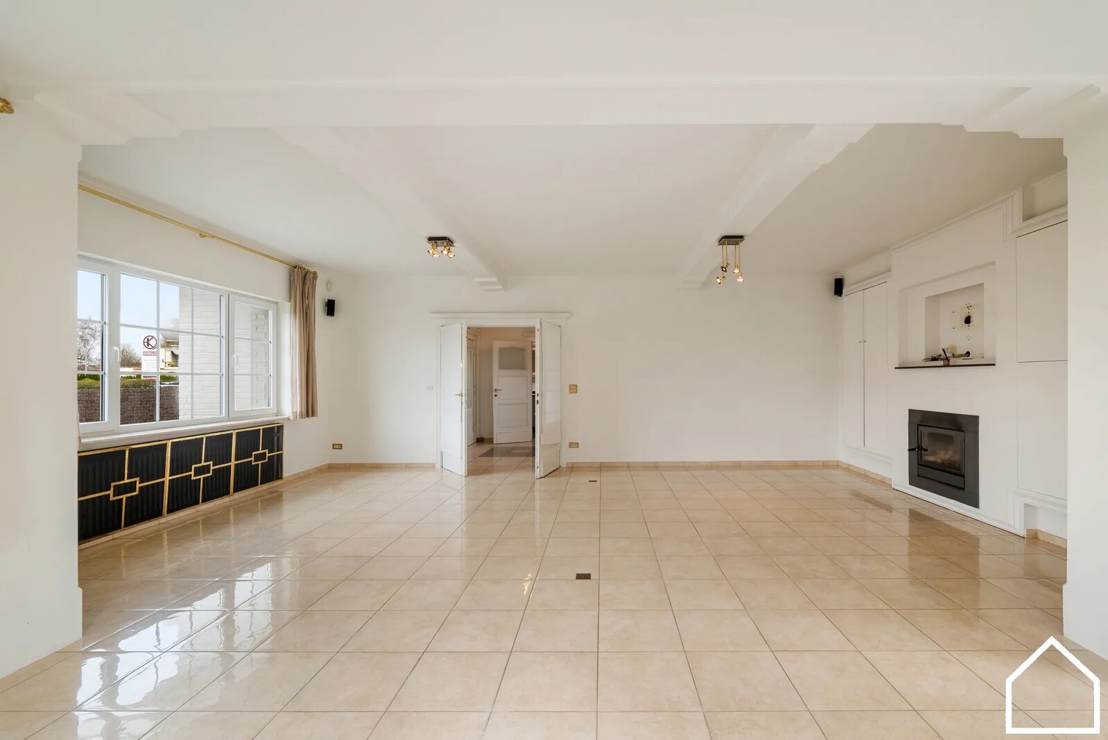 Via de ruime inkomhal (17,75 m² + 7,25 m²) met vestiaire en apart toilet komt u in de lichtrijke leefruimte (54 m²), uitgerust met een gezellige houtcassette.