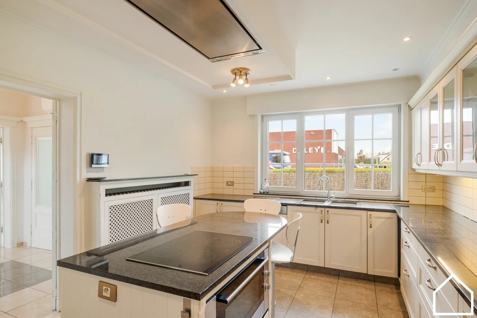 De volledig ingerichte keuken (17,50 m²) beschikt over alle comfort, waaronder een oven, combi-microgolf, koffiemachine, vaatwasser, keramische kookplaat, dubbele spoelbak en een granieten werkblad.