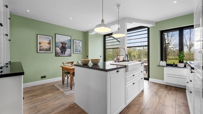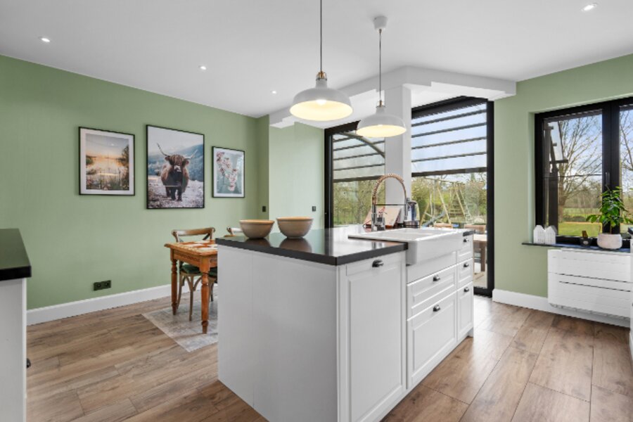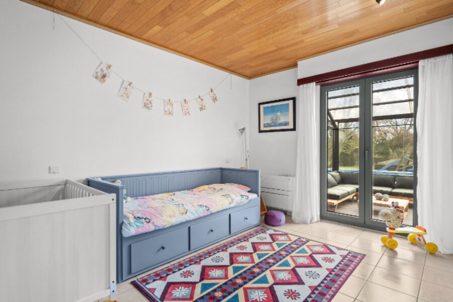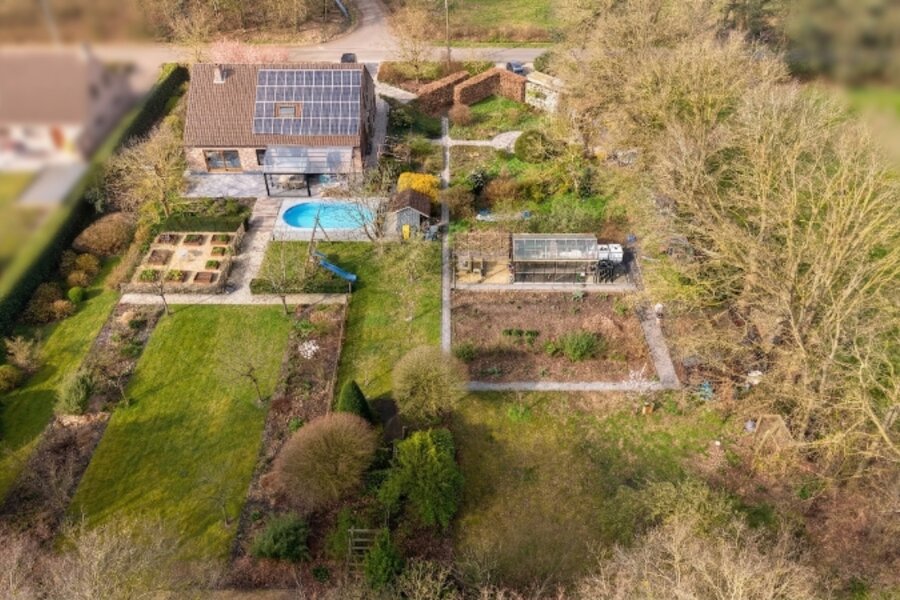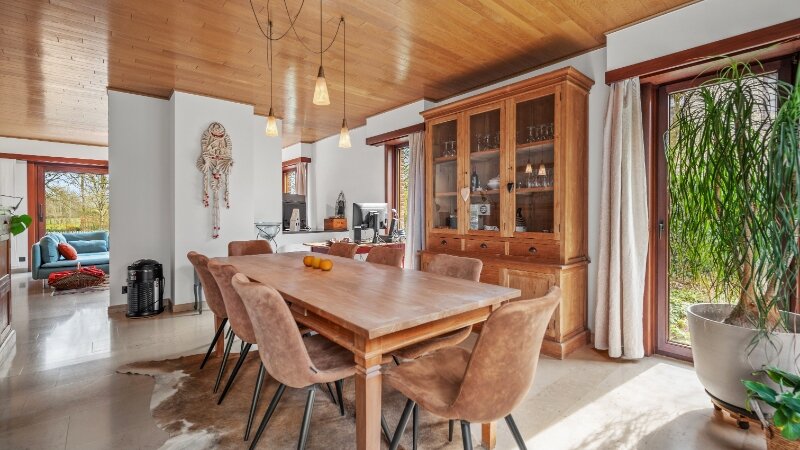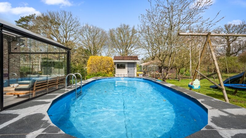 Zeer rustig gelegen ruime vernieuwde villa op een perceel van 36a16ca met zwembad en aangelegde tuin met veel privacy en zicht op weilanden. Oostelijk georiënteerd.