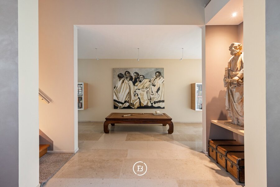 De woning verwelkomt u via een ruime inkomhal die meteen een gevoel van openheid creëert. De leefruimtes zijn doordacht ingedeeld en genieten van grote raampartijen die zorgen voor een aangename connectie met de tuin. De woonkamer straalt warmte en gezelligheid uit en vormt samen met de eetplaats een harmonieus geheel.