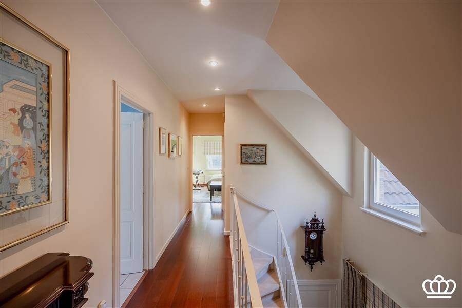Via de open trap in de inkomhal toegang tot de overloop/vide van de eerste verdieping met een apart toilet.