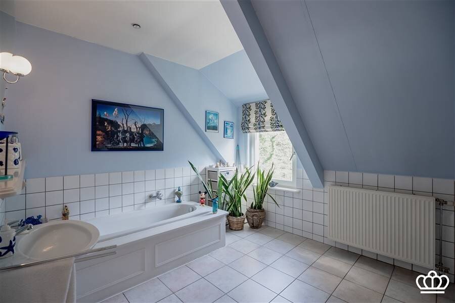 Centraal een 3de ruime badkamer voorzien van een douche, toilet, lavabo en een bad.