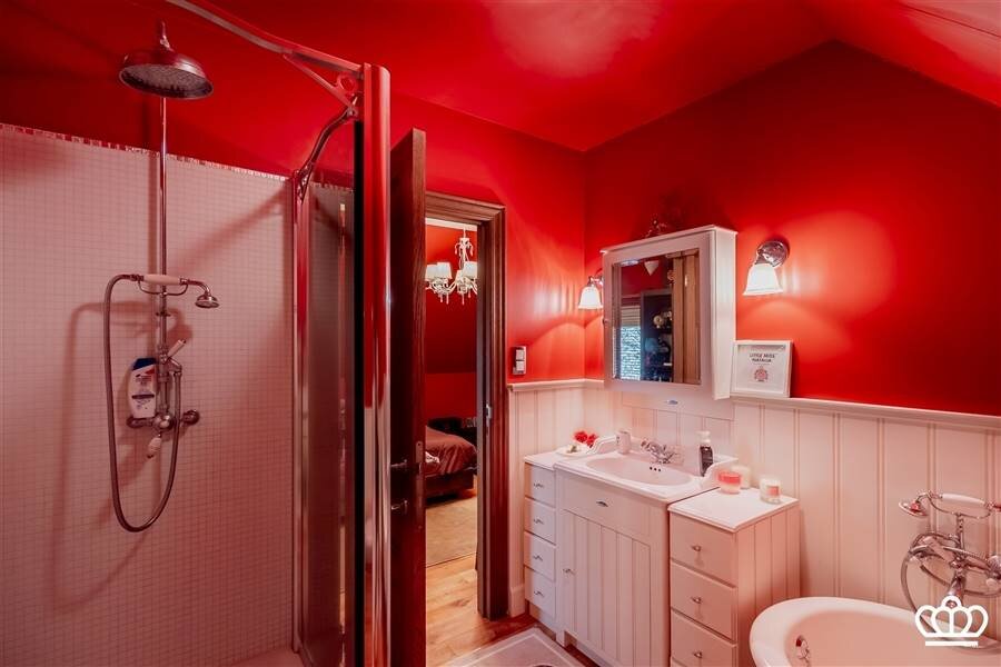 Verder nog een 3de én vierde slaapkamer/ logeerkamer, verbonden door een aparte ruimte (bv extra living). Ensuite nog een 4de badkamer voorzien van een lavabomeubel, toilet, bidet en instapdouche met regenshower met zilveren cabine.