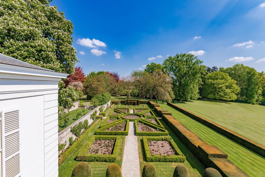 Het kasteeldomein beschikt oa over tuinen van Russell Page, boomgaard, moestuin, bloementuin, zwembad en tennisterrein.
