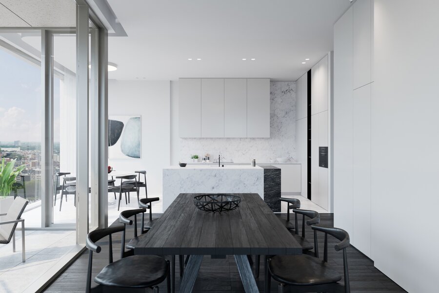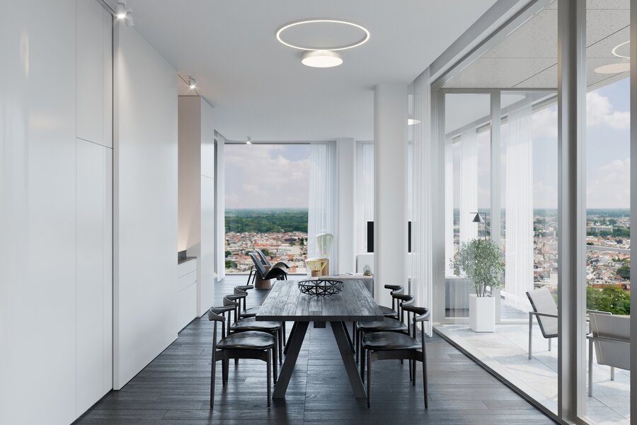 Een royale lobby leidt u naar de separate liften die toegang geven tot de bovenste penthouses. De Serenity appartementen zijn gelegen op de 22ste tot en met de 26ste verdieping. Optimale luxueuze afwerking op maat, royale glaspartijen en een uitzonderlijk panoramisch zicht !