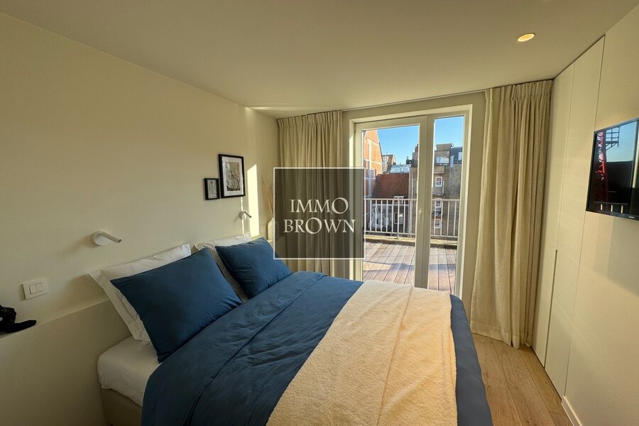 Gerenoveerde penthouse te koop in de Leopoldlaan vlakbij de Zeedijk, voorzien van twee ruime zonneterrassen.