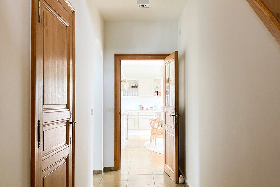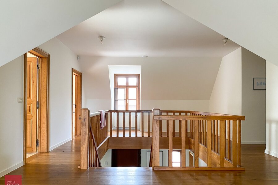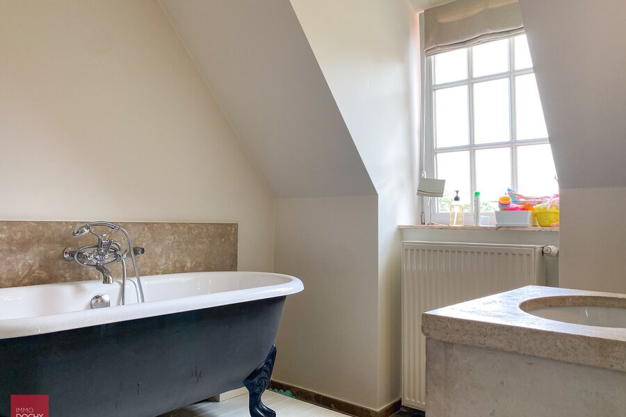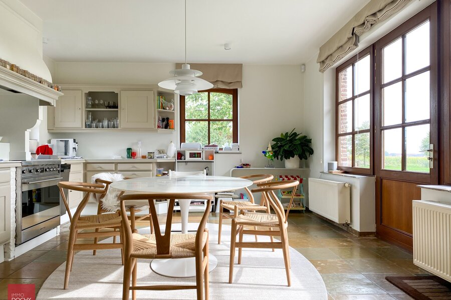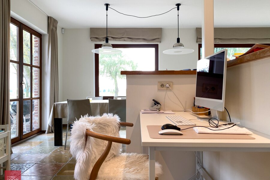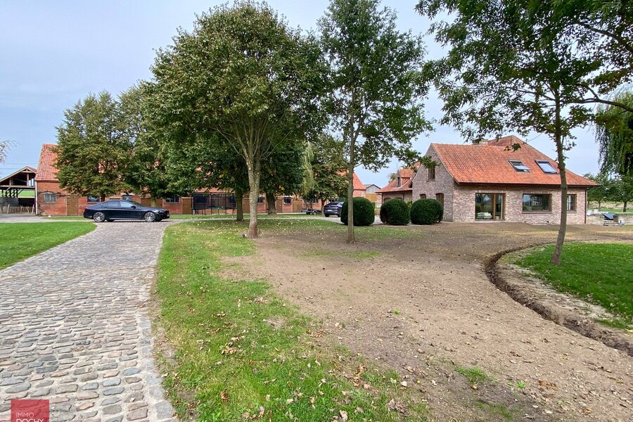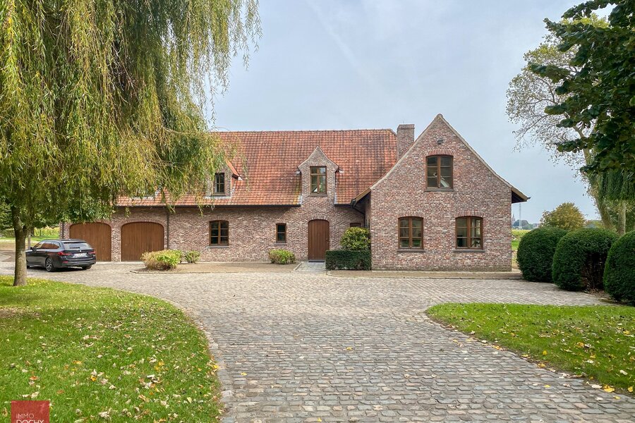Uniek eigendom te bereiken via private toegangsdreef. Villa bestaande uit een inkomhall, groot bureel, ruime living, zitplaats met open haard, ingerichte keuken met eetruimte, wasberging / mudroom, 4 slaapkamers, badkamer, zitruimte in nachthall, zolder, kleine kelder, garage voor 2 wagens. Netjes binnenin en volledig wit geschilderd. Mooie uitgestrekte tuin met gras en natuurlijke vijver. Onderhoud hagen en bomen in huurprijs begrepen. Zitmaaier ter beschikking van huurder. Mogelijkheid tot gebruik grote bijgebouwen.
