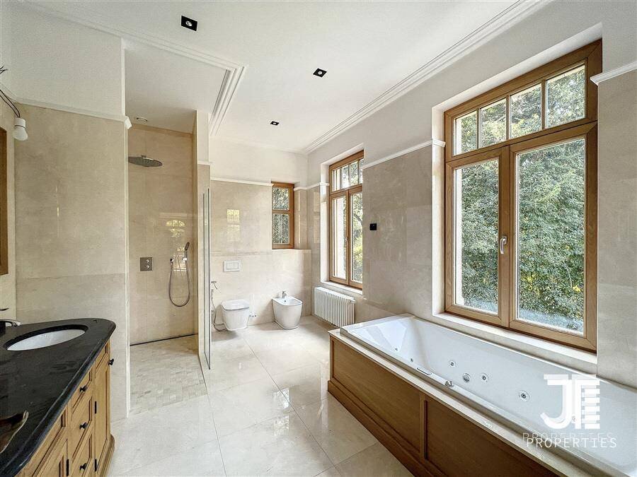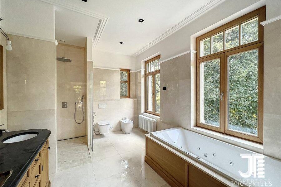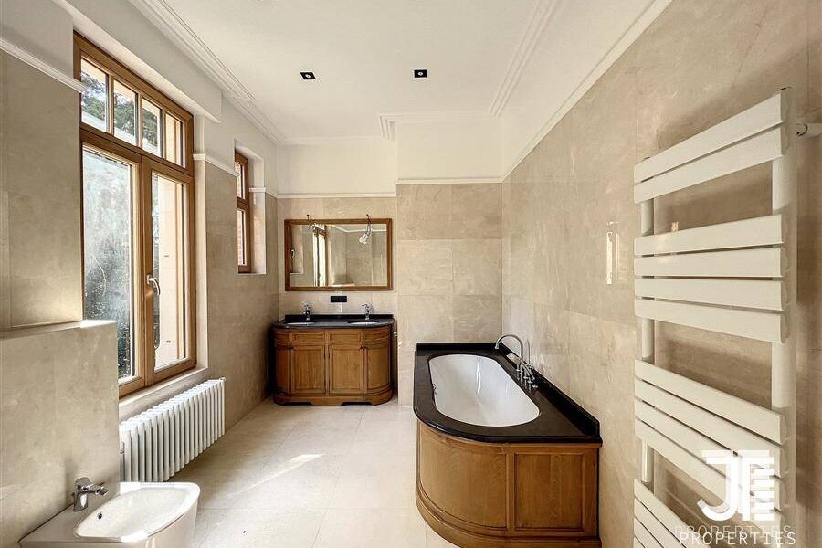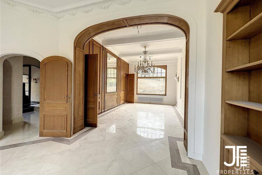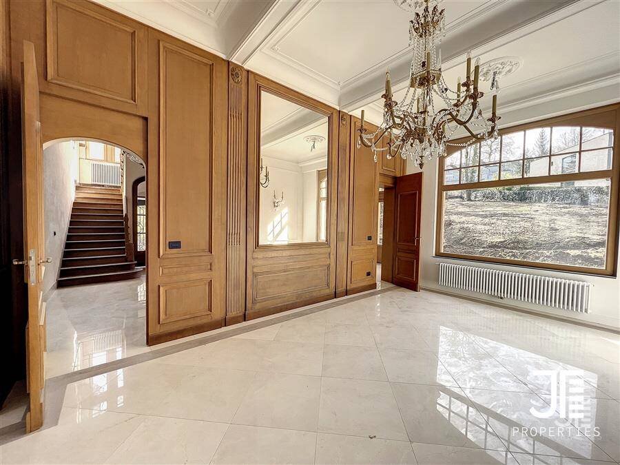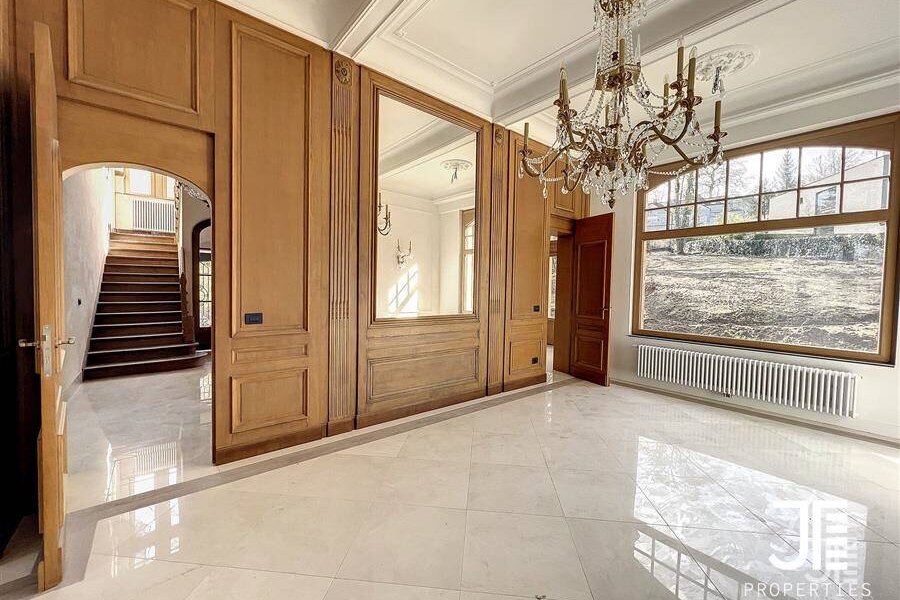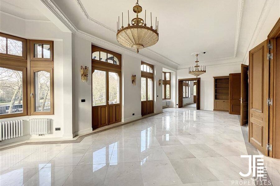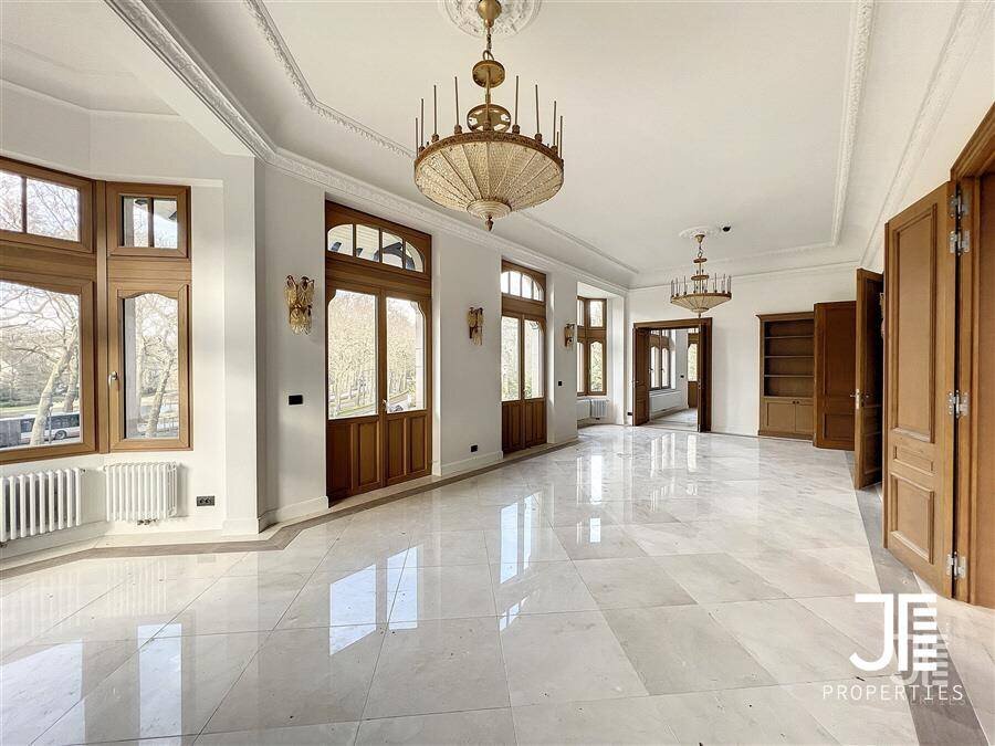 Op een van de mooiste lanen van Brussel, prachtig "Belle Epoque" herenhuis volledig gerenoveerd. Oppervlakte van 1329m2 leefruimte (1795m2 bruto) op een perceel van 45a 59ca. Het terrein is opdeelbaar in drieën waardoor de bouw van een klein gebouw van 450m2 op een bouwoppervlakte van 600m2 en twee percelen voor een eventuele splitsing van de villa in twee villa's van 652m2 en 676m2 woonoppervlak. Elke villa heeft een grote woonkamer van 52m2, volledig ingerichte keuken, 6 suites met eigen badkamer en kleedkamer, dus 12 in totaal, 3 tot 5 kantoren, twee liften (een luxe glazen lift en een gesloten lift), grote kelders, terrassen en schitterende zolderruimte van 70-80m2. Dubbele gasverwarming. Ideaal voor co-working, co-living, klein hotel of bedrijfs- of medisch centrum. Conciërge flat. Bevoorrechte locatie in het hart van Brussel, dicht bij het bos en de grote wegen. Charmant kasteel van hoog aanzien. Voor goed geïnformeerde investeerders.
