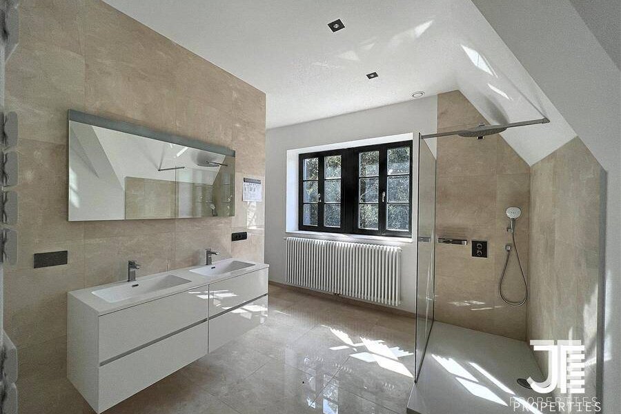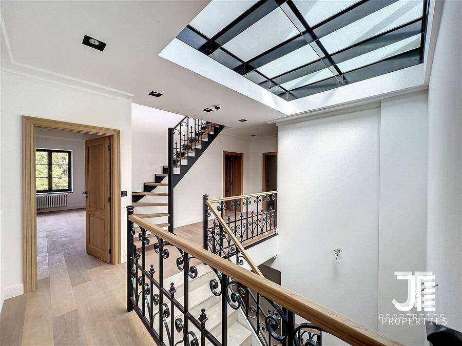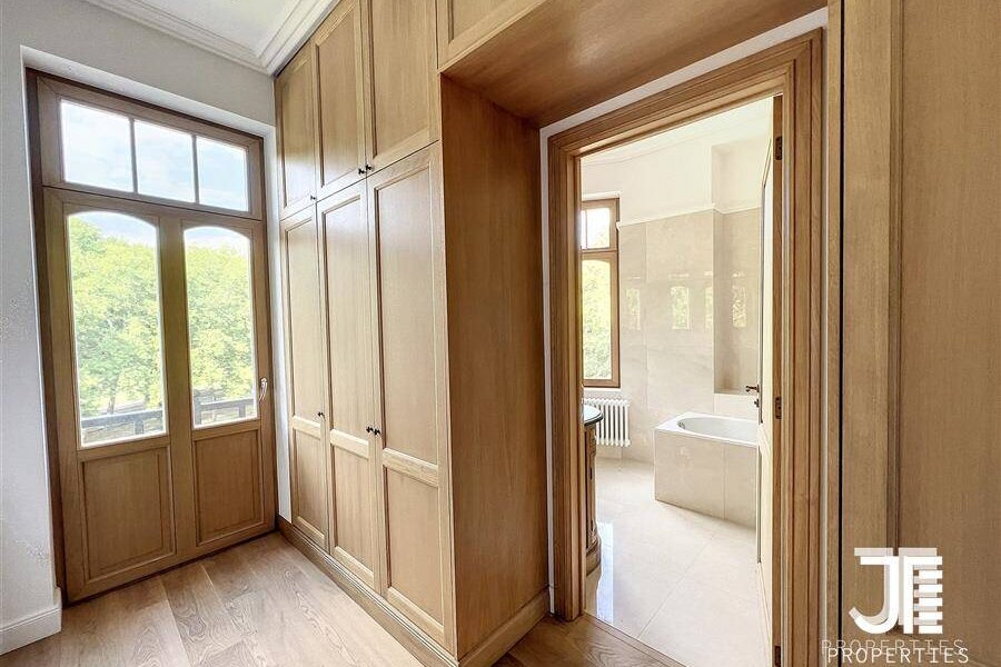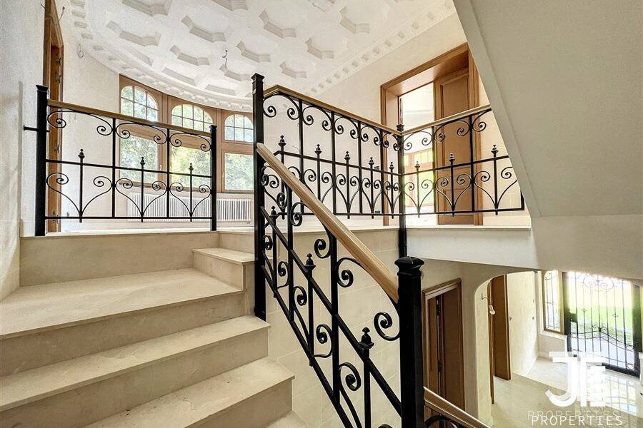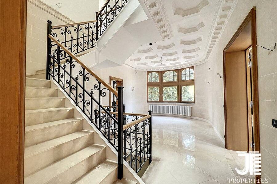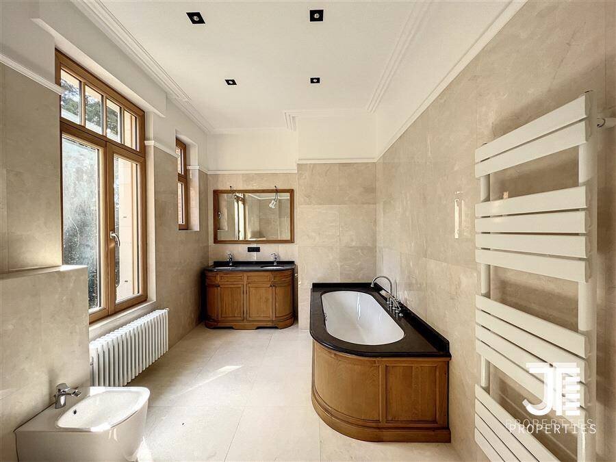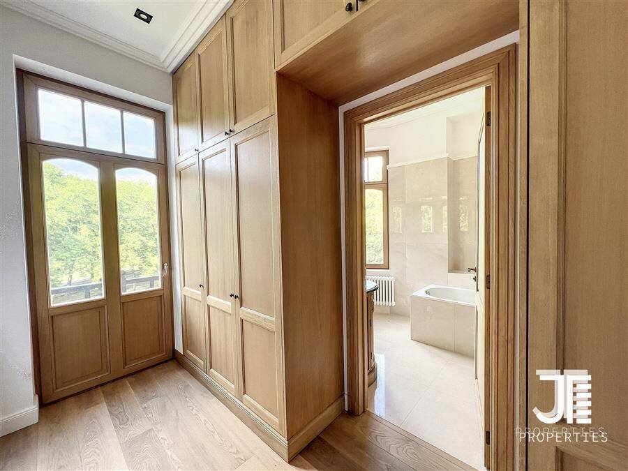 Op een van de mooiste lanen van Brussel, prachtig "Belle Epoque" herenhuis volledig gerenoveerd. Oppervlakte van 1329m2 leefruimte (1795m2 bruto) op een perceel van 45a 59ca. Het terrein is opdeelbaar in drieën waardoor de bouw van een klein gebouw van 450m2 op een bouwoppervlakte van 600m2 en twee percelen voor een eventuele splitsing van de villa in twee villa's van 652m2 en 676m2 woonoppervlak. Elke villa heeft een grote woonkamer van 52m2, volledig ingerichte keuken, 6 suites met eigen badkamer en kleedkamer, dus 12 in totaal, 3 tot 5 kantoren, twee liften (een luxe glazen lift en een gesloten lift), grote kelders, terrassen en schitterende zolderruimte van 70-80m2. Dubbele gasverwarming. Ideaal voor co-working, co-living, klein hotel of bedrijfs- of medisch centrum. Conciërge flat. Bevoorrechte locatie in het hart van Brussel, dicht bij het bos en de grote wegen. Charmant kasteel van hoog aanzien. Voor goed geïnformeerde investeerders.