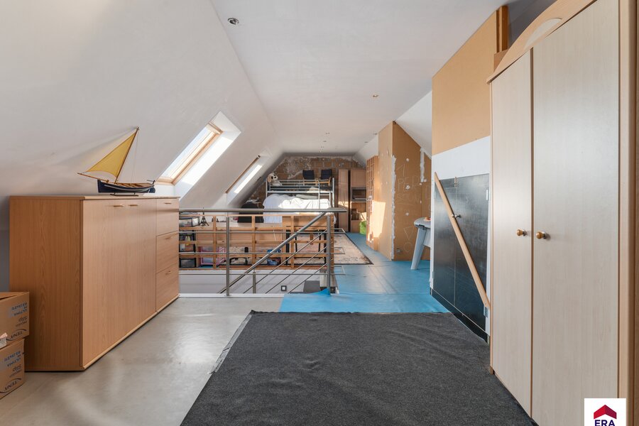 Derde verdiep: grote zolder. Kan verder afgewerkt worden tot slaapkamer met badkamer.