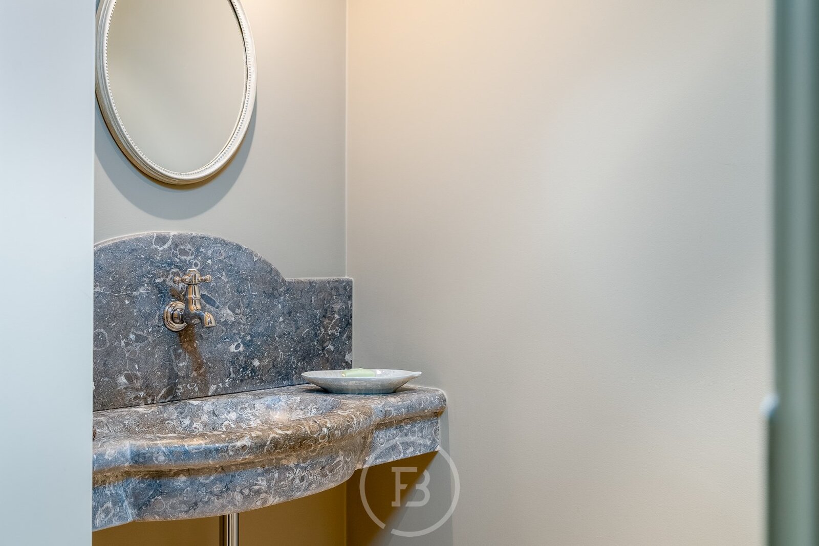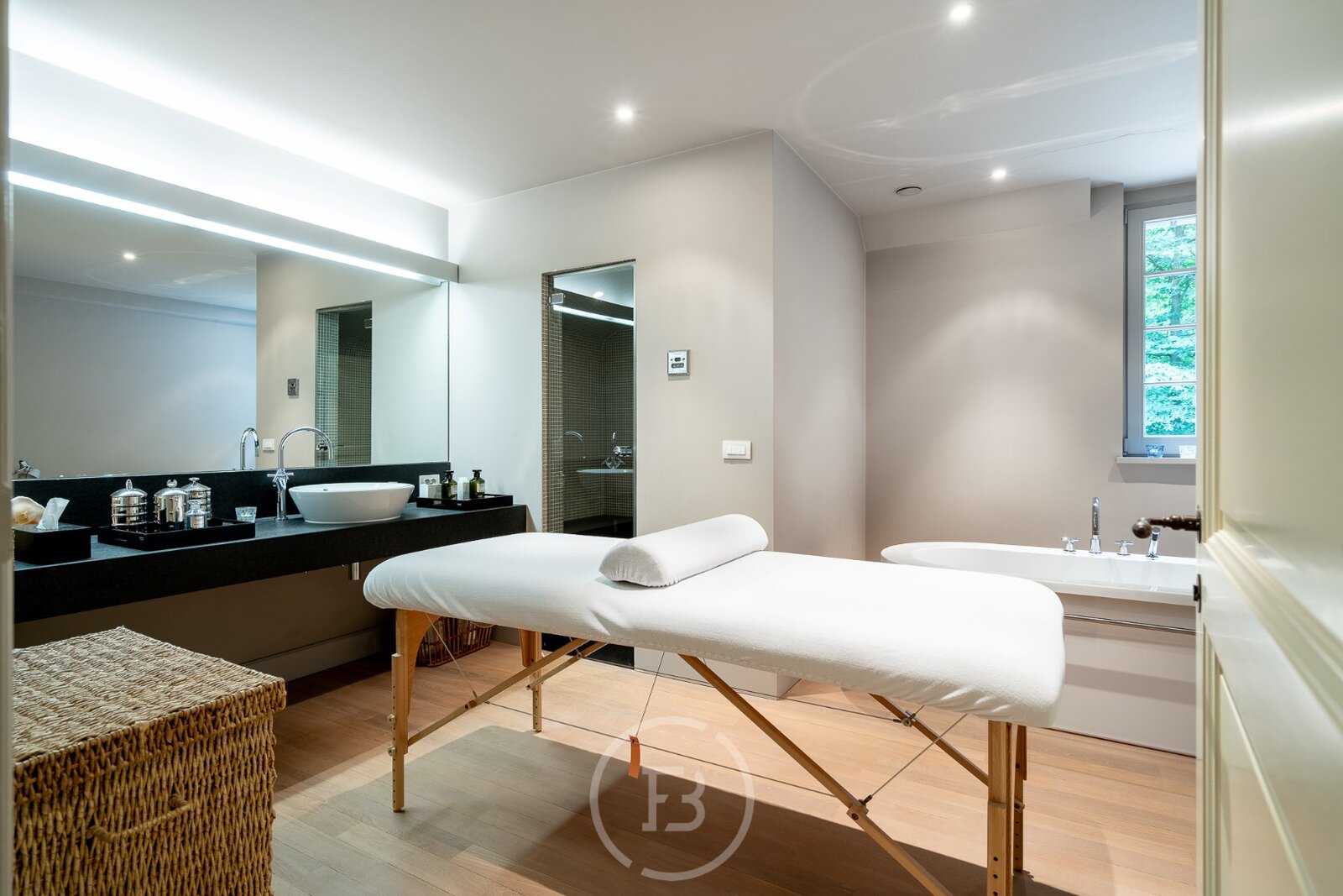 Boven leidt de nachthal tot de masterbedroom met ruime dressing en badkamer (dubbele lavabo, bad, douche en toilet). Verder zijn er nog 3 slaapkamers, een apart toilet en badkamer met ligbad, hammam, dubbele lavabo.