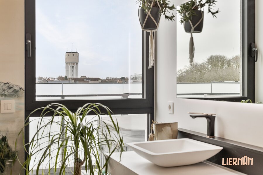 Nabij het stadspark, met zicht op de Dender wordt deze unieke penthouse te koop aangeboden. De ruimte is fenomenaal, het uitzicht vanop het uitgestrekt terras uitmuntend.