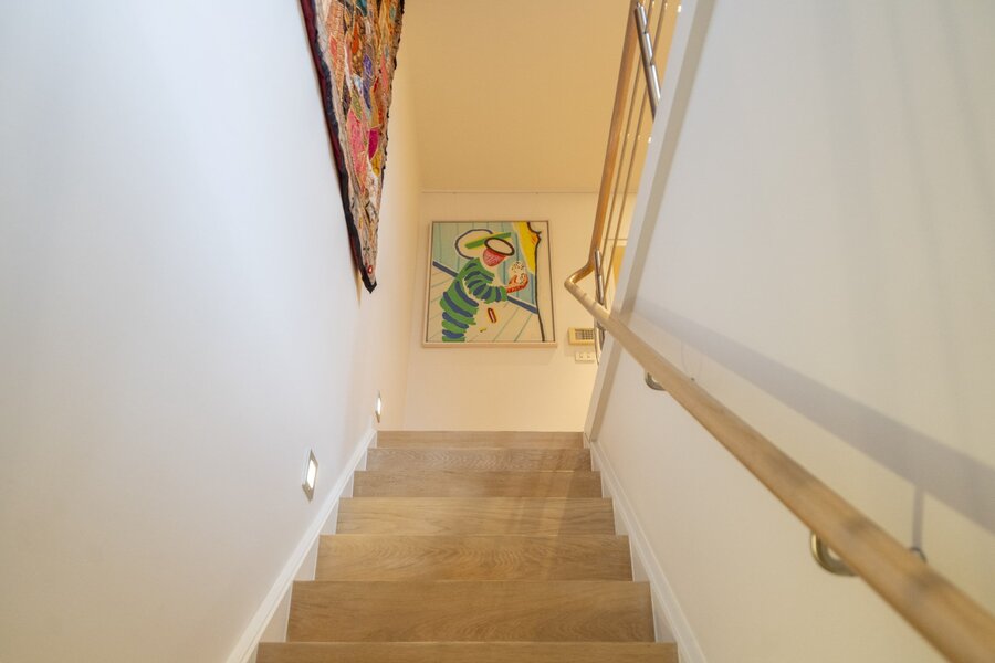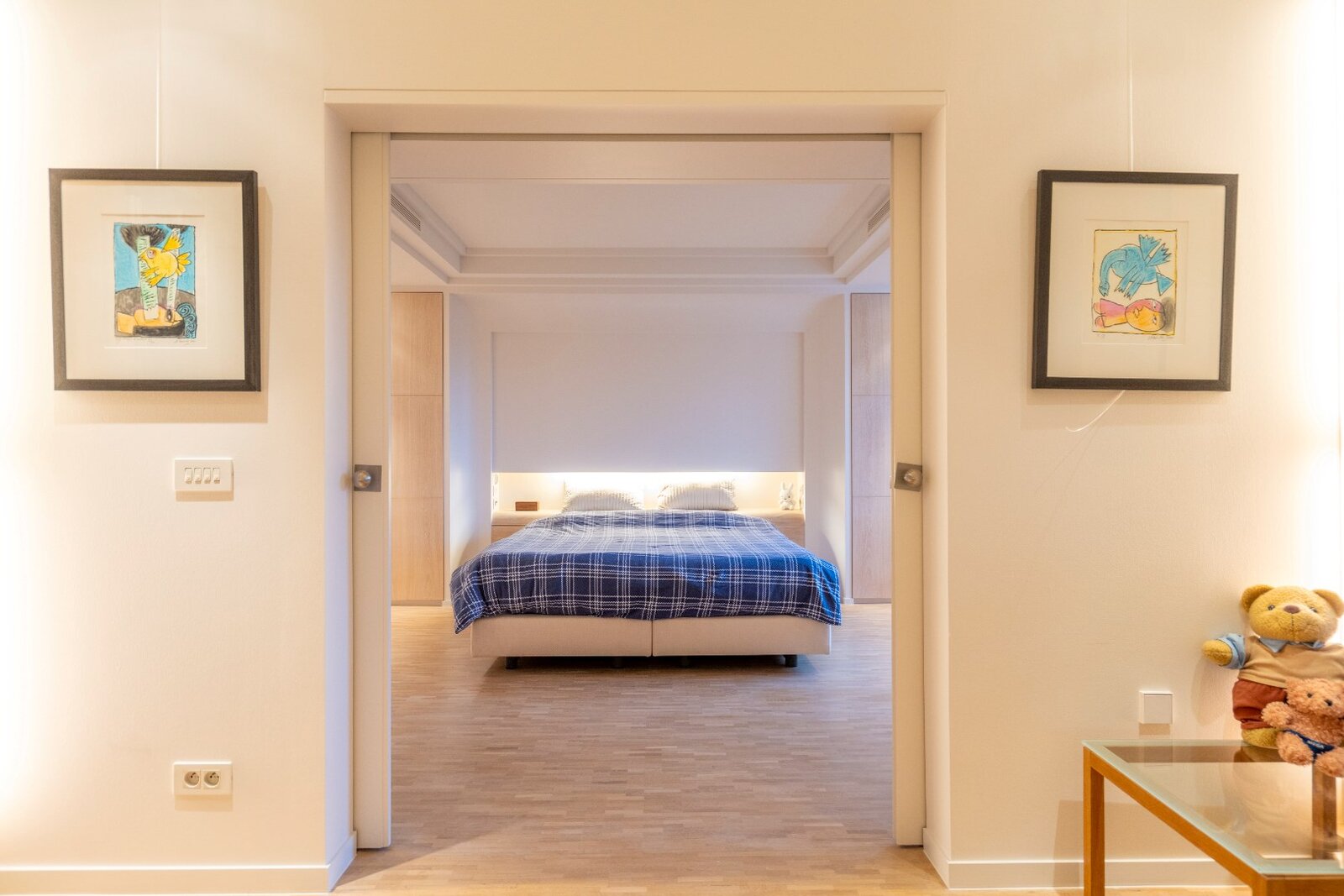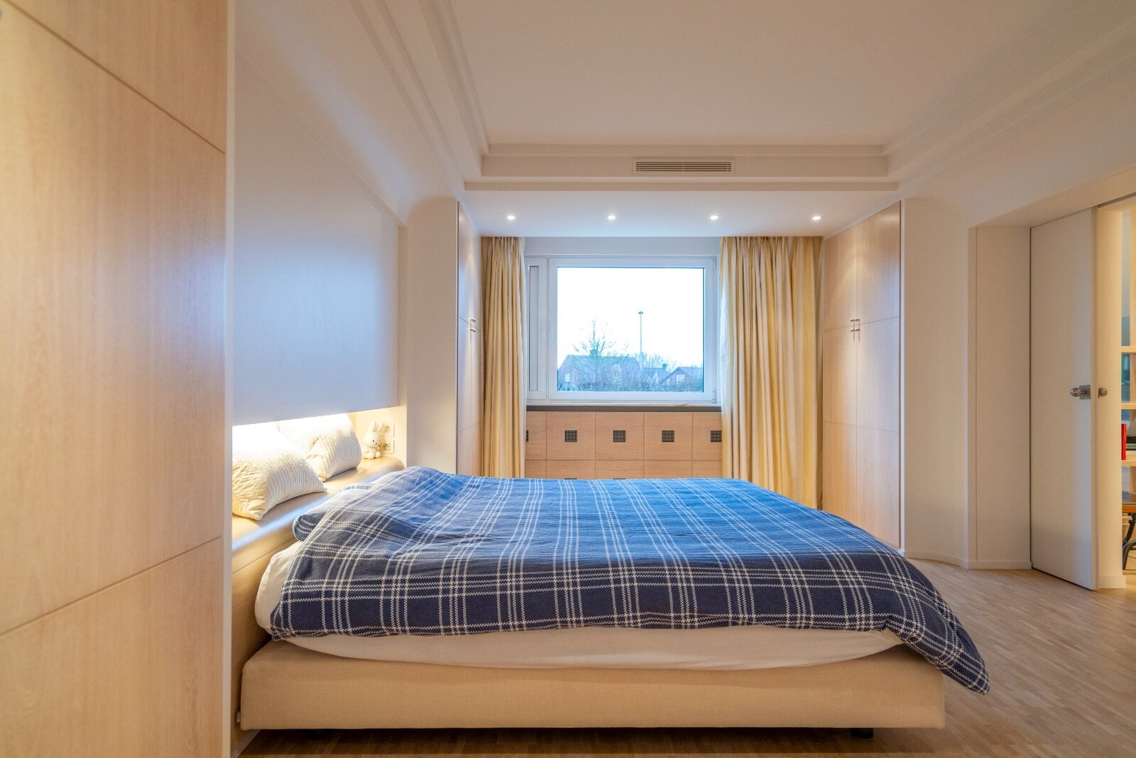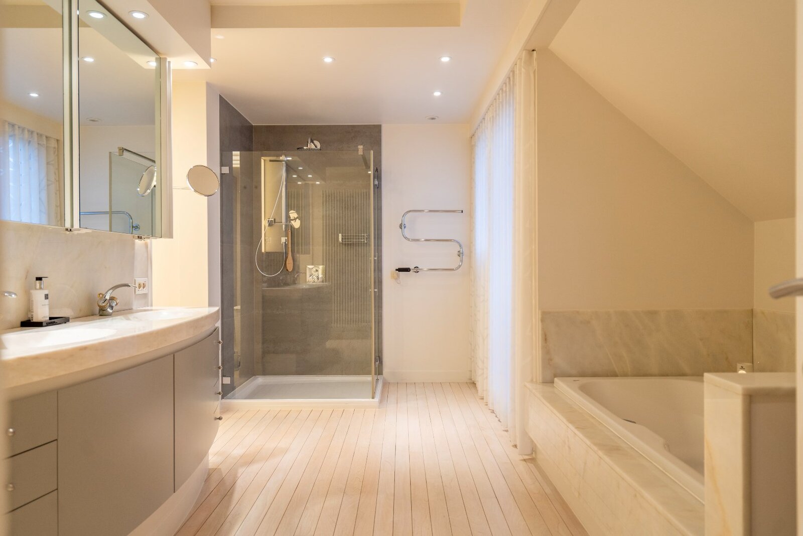 De bovenverdieping biedt een overvloed aan comfort en een praktische indeling. De master bedroom, gelegen aan de tuinkant, uitgerust met airconditioning, een royale badkamer, een dressing en een bureauruimte.
