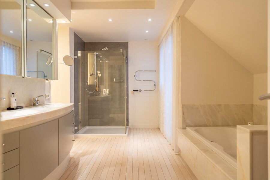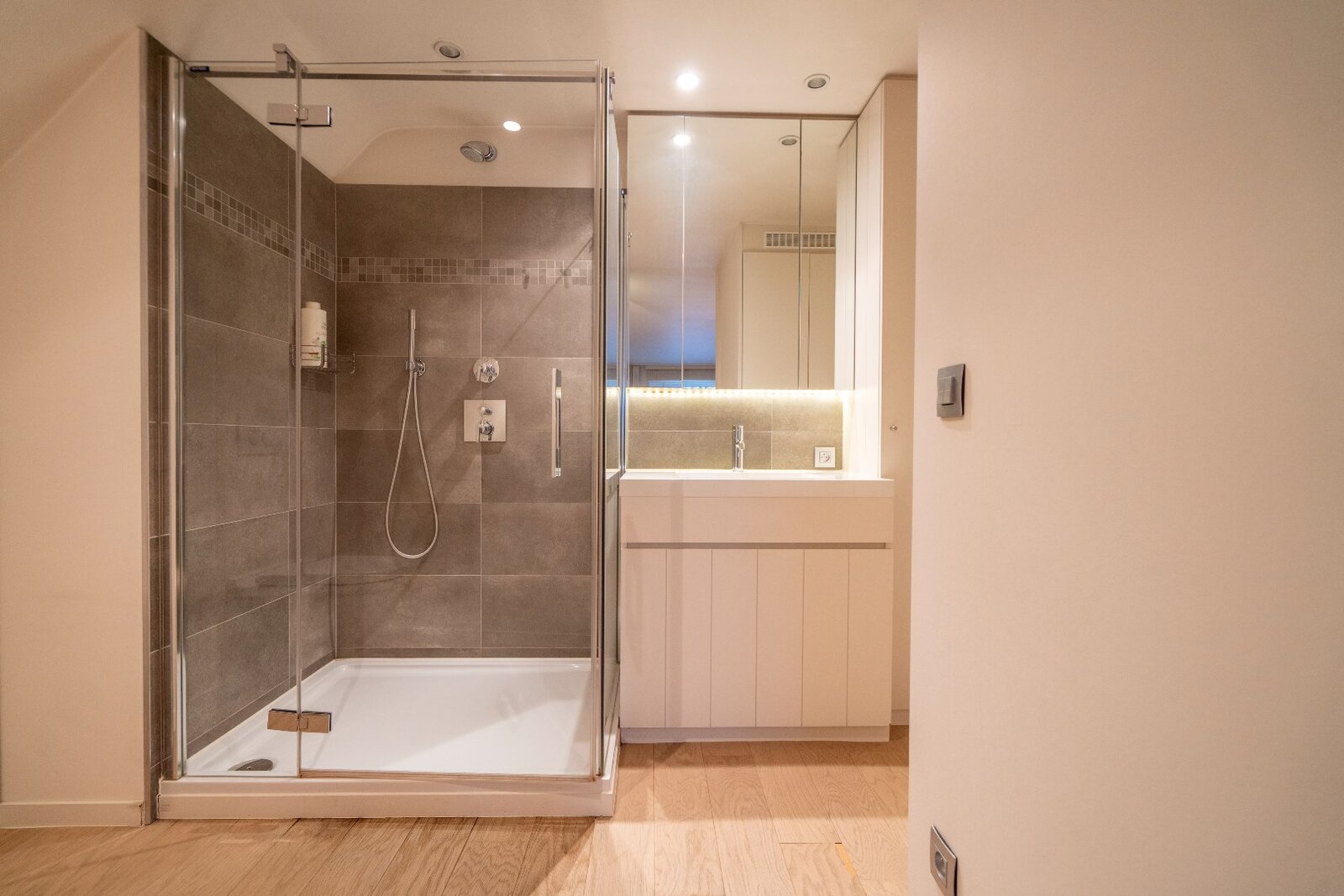 Bij binnenkomst van het privégedeelte ervaart u direct de verfijnde afwerking en het comfort. Je treft er een ruime inkomhal met vestiaire en gastentoilet,