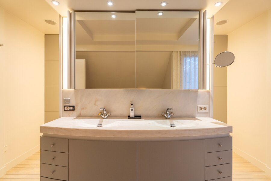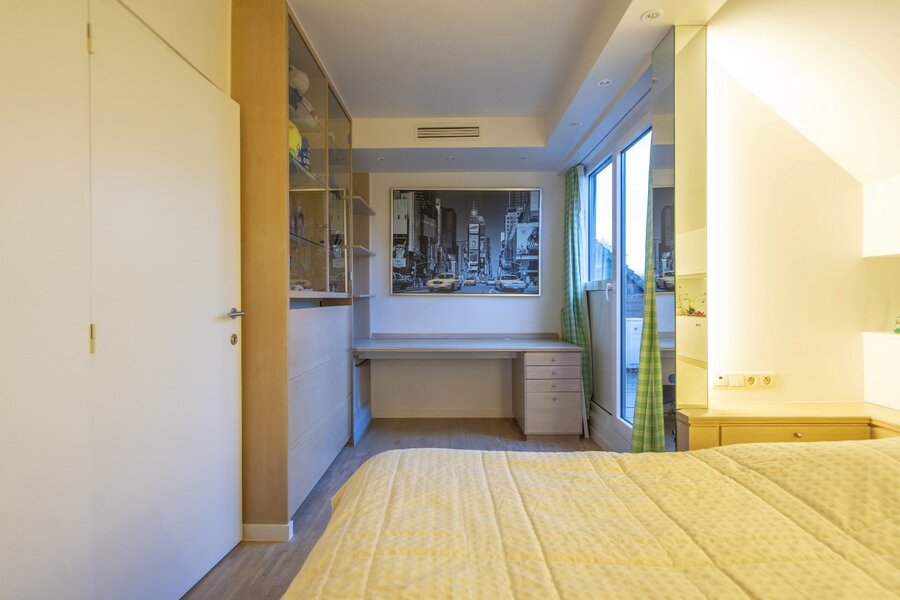 Alle kamers op de bovenverdieping zijn voorzien van ingemaakte kasten en airco.