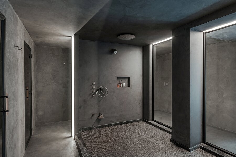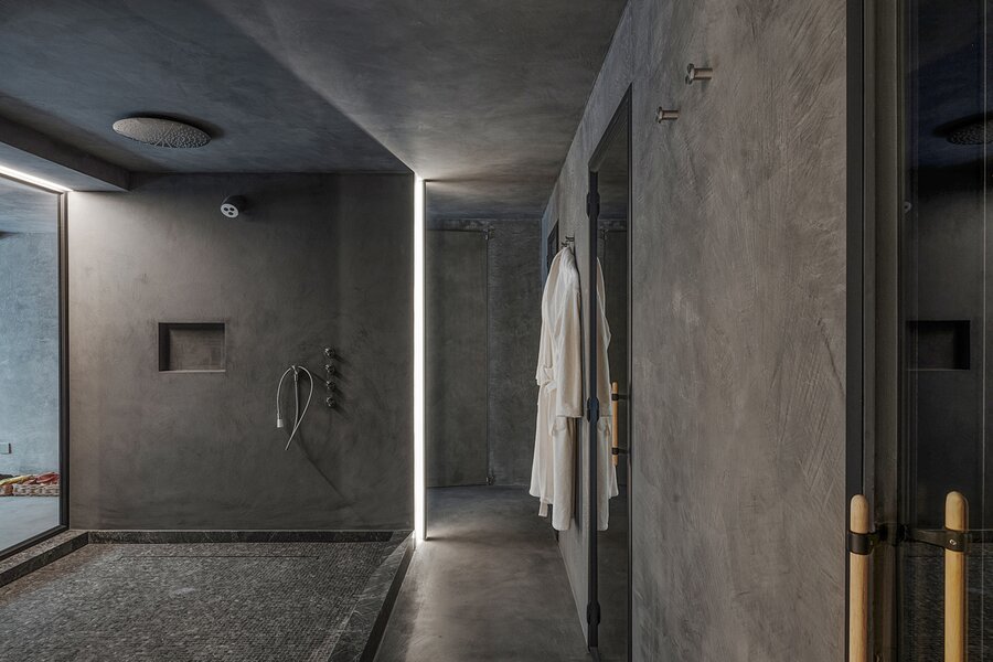 De kelderverdieping werd ingericht als een magnifieke wellness met infraroodcabine, sauna, hammam, douches, kleedkamer,... aansluitend aan de degustatieruimte en bar.