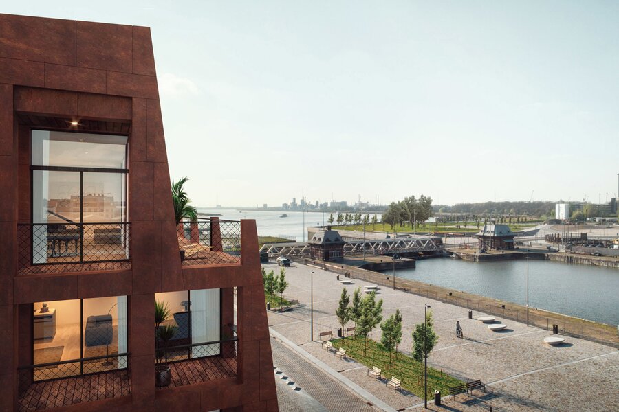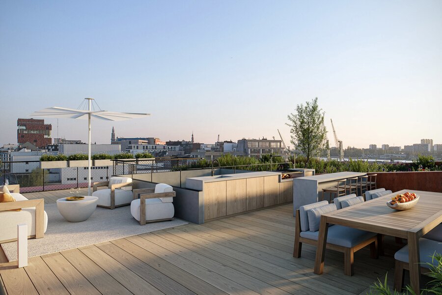 Gelegen op het Eilandje, biedt deze penthouse prachtige vergezichten en bevindt deze zich op wandelafstand van restaurants, galerieën, winkels en het MAS-museum.