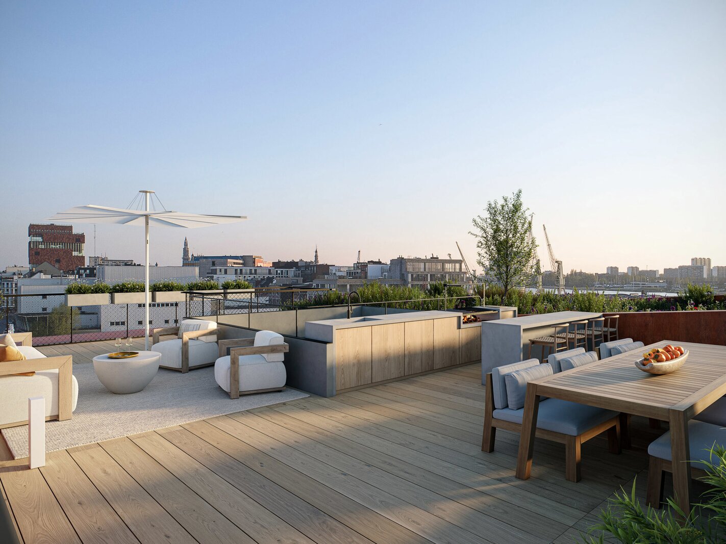 Dit exclusieve penthouse met panoramisch zicht op het water bevindt zich in de Montevideo Residence, waar luxe en duurzaamheid samenkomen. Met twee slaapkamers, omringende terrassen en een ruim dakterras biedt deze woning, ingericht door interieurarchitect Arjaan De Feyter, een unieke woonbeleving.