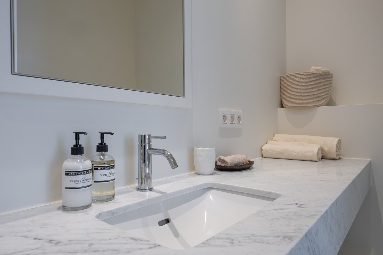 Het interieur straalt klasse uit dankzij het visgraatparket, vloerverwarming en de hoogwaardige afwerking in elk detail. Praktische troeven zijn er in overvloed: een private binnenlift, royale bergruimtes en een grote kelder.