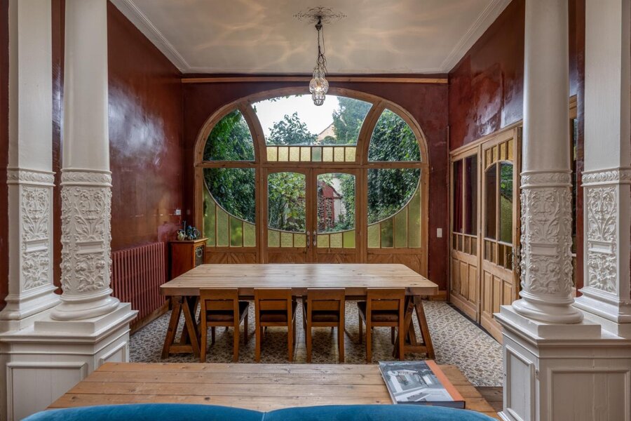 Het pand telt twee huisnummers, wat de mogelijkheid biedt om het linker gedeelte opnieuw te activeren als bed & breakfast. Dankzij een aparte inkom, eigen tuin en afzonderlijke traphal is de indeling daar perfect op voorzien, waardoor de scheiding tussen privé en gastenverblijf op een elegante manier wordt gegarandeerd.