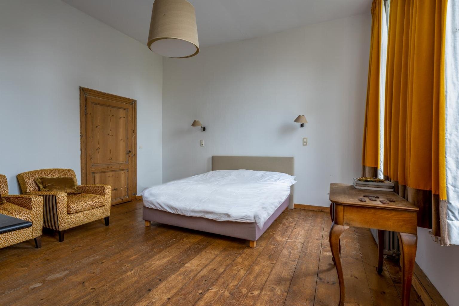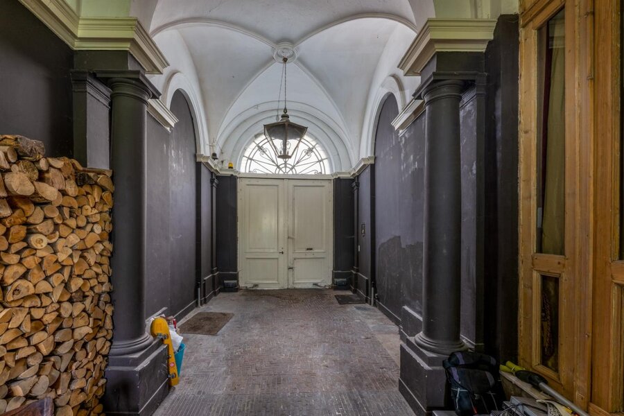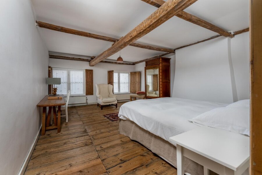 In het historische hart van Brugge bevindt zich een van de meest indrukwekkende herenhuizen van de stad. Dit uitzonderlijk brede hoekpand, gebouwd in classicistische stijl rond 1787 op de fundamenten van de voormalige Sint-Walburgakerk, is officieel beschermd als monument en behoort daarmee tot het waardevolste erfgoed dat Brugge te bieden heeft. De statige gevel met zijn verfijnde details kondigt meteen aan wat binnen te vinden is: een woning die niet alleen uitzonderlijk veel ruimte biedt, maar ook een geschiedenis en betekenis draagt die generaties overstijgt.