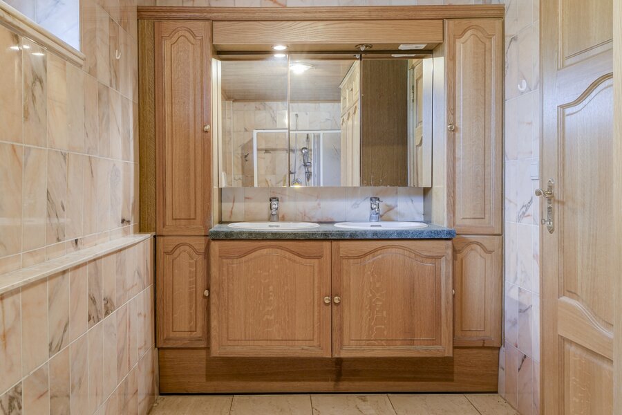 Naast de hoofdwoning ligt het charmante bijgebouw, in de volksmond bekend als “het praathuis”. Dit vormt zonder twijfel een waardevolle en zeldzame extra troef op het domein.