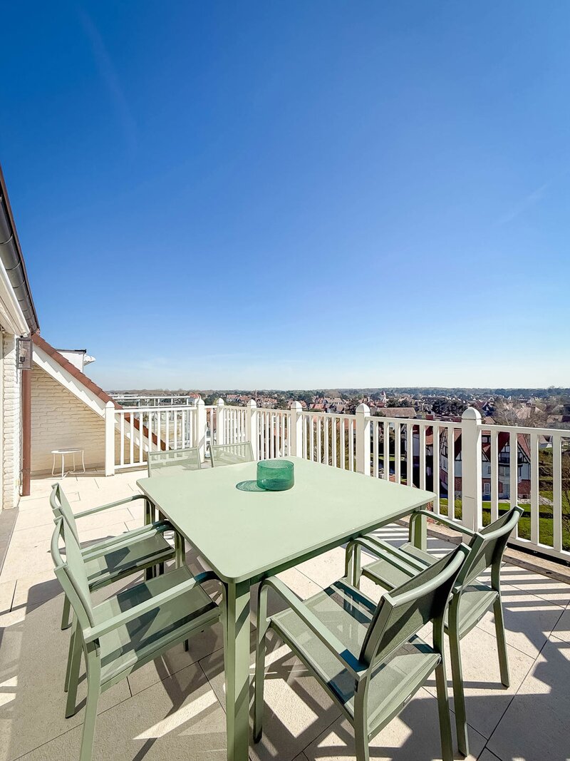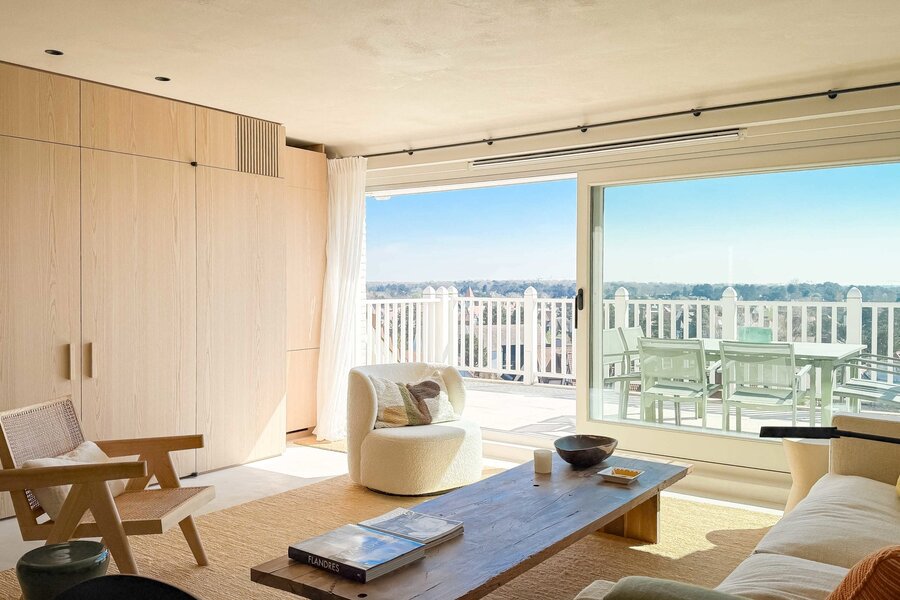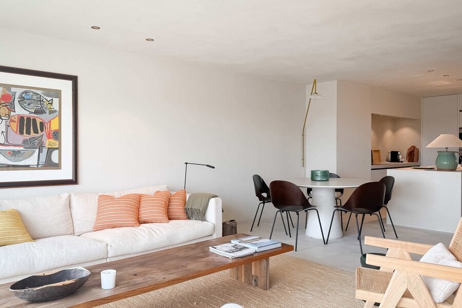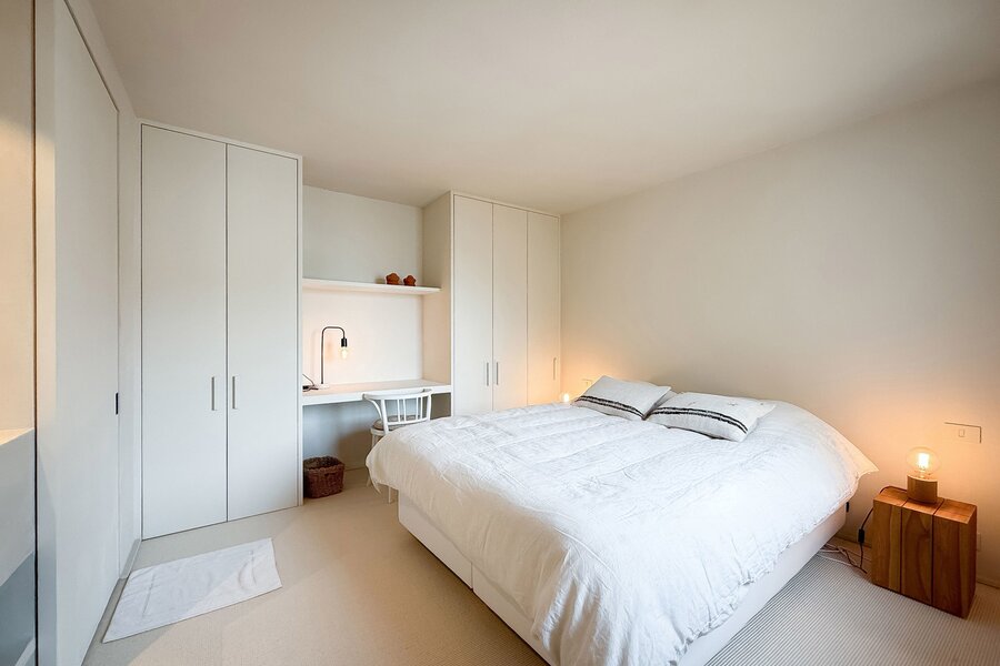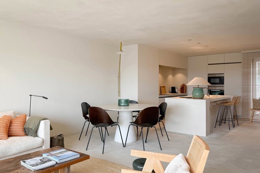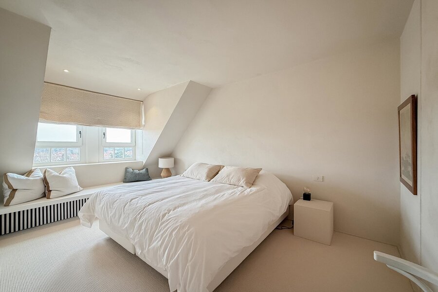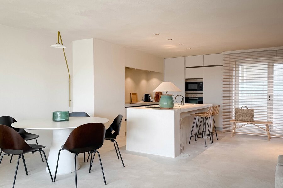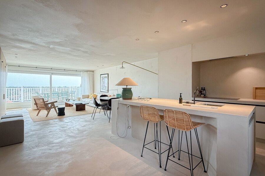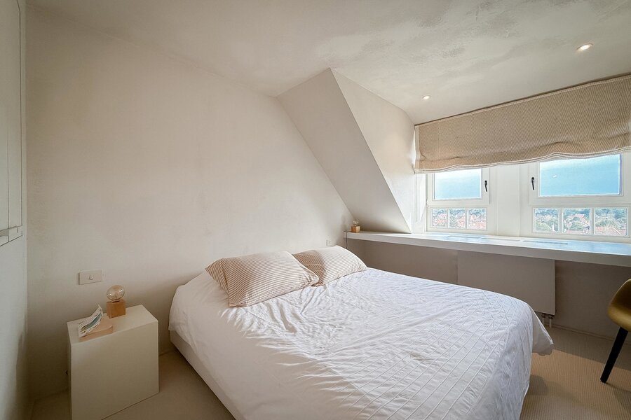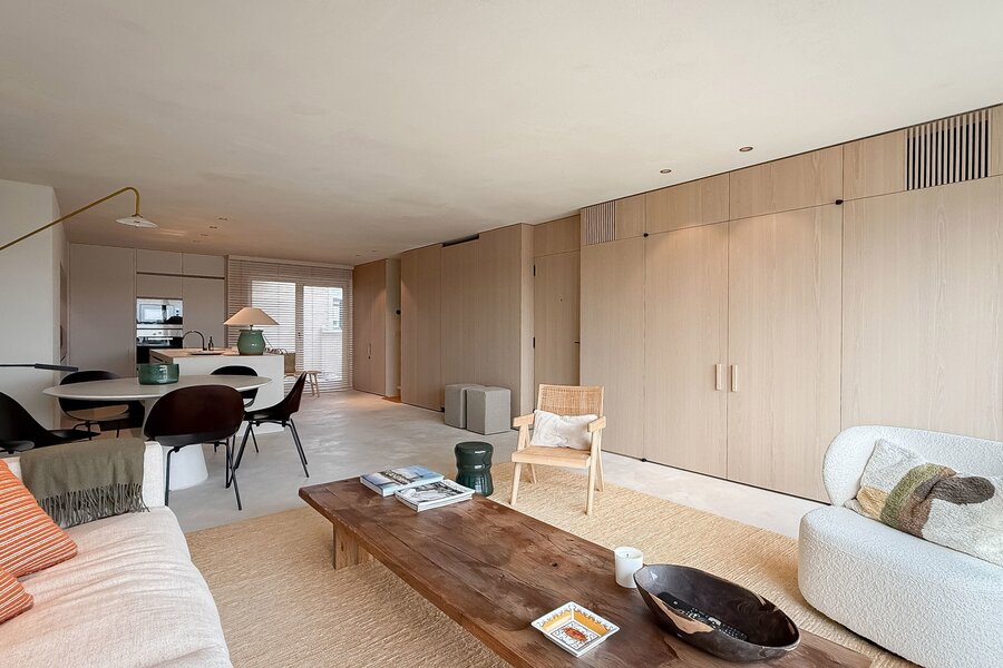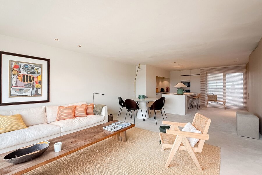 In hartje Zoute, omringd door exclusieve winkels, bevindt zich dit luxueuze en minimalistisch ingerichte duplexappartement. Afgewerkt met hoogwaardige materialen, straalt het een tijdloze elegantie uit. Renovatie door "Nathalie Deboel Interior Design". De grote raampartijen laten overvloedig daglicht binnen en bieden een adembenemend uitzicht op de prachtige villa’s van het Zoute.