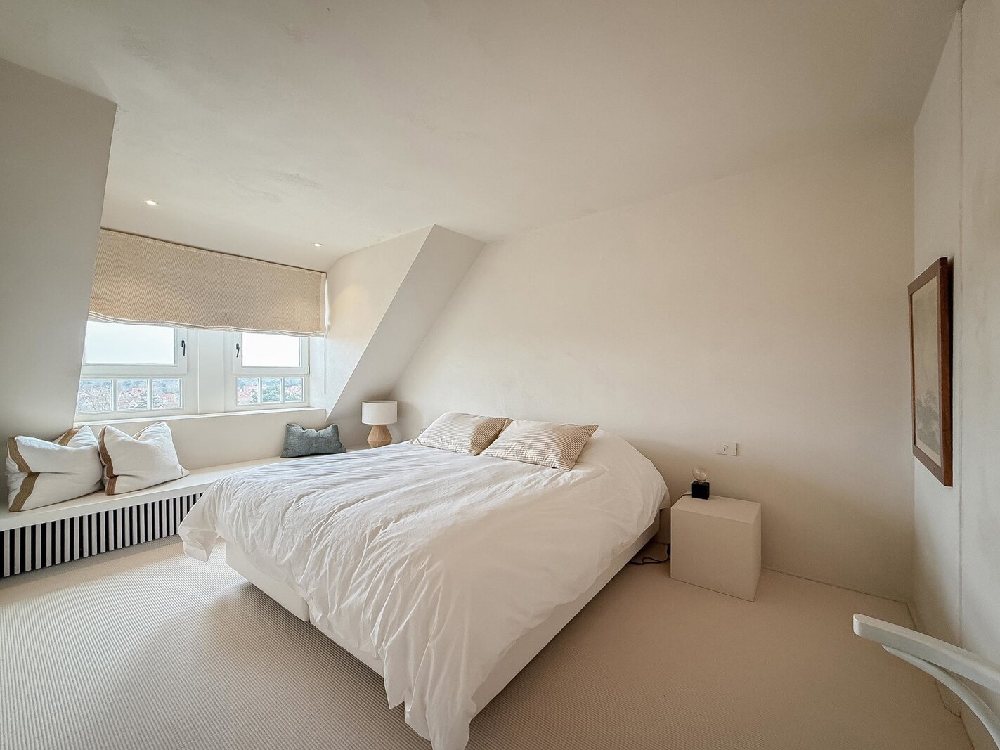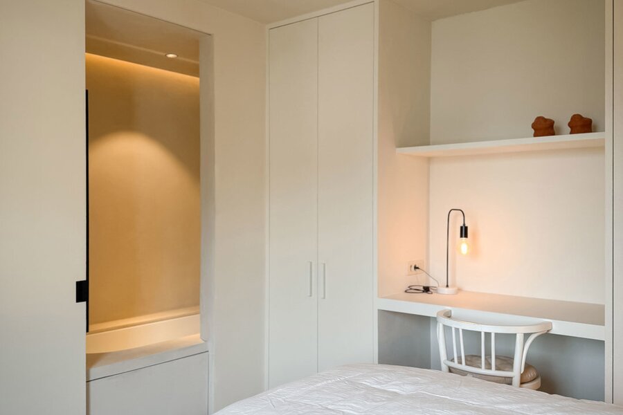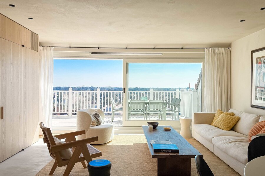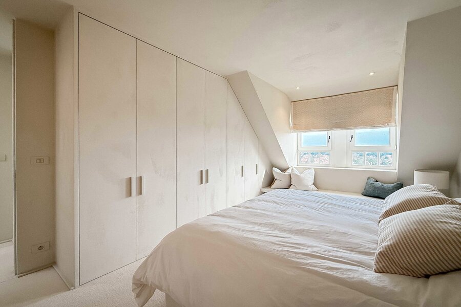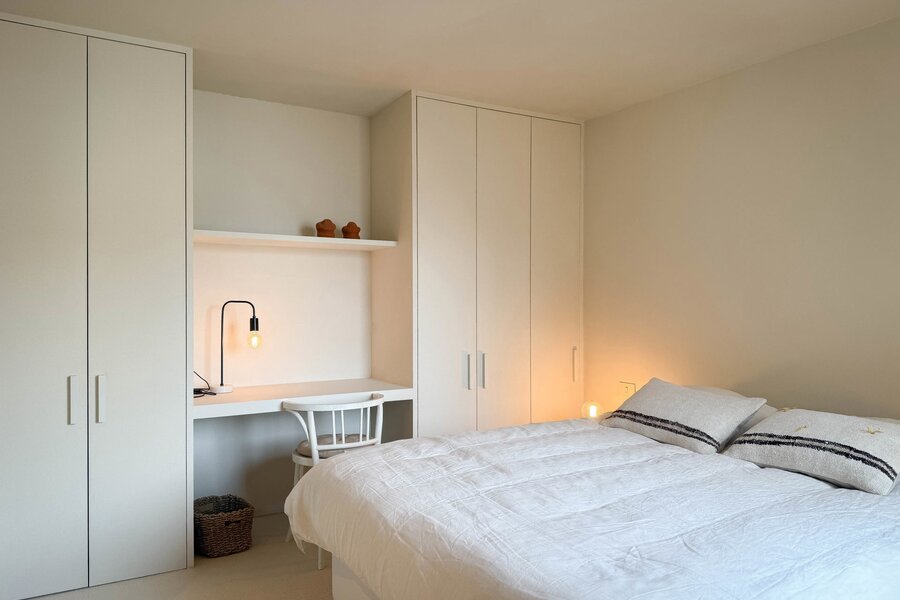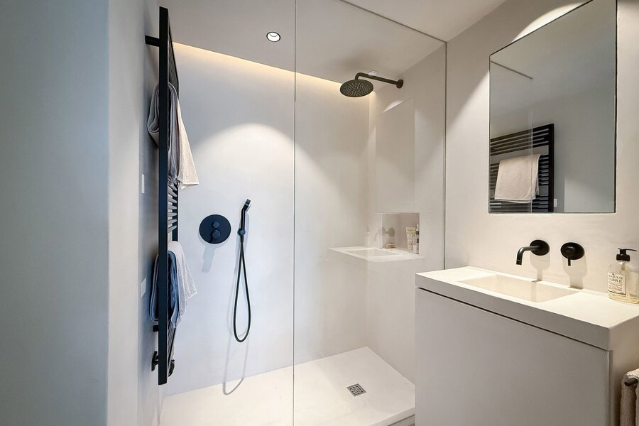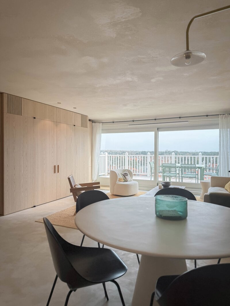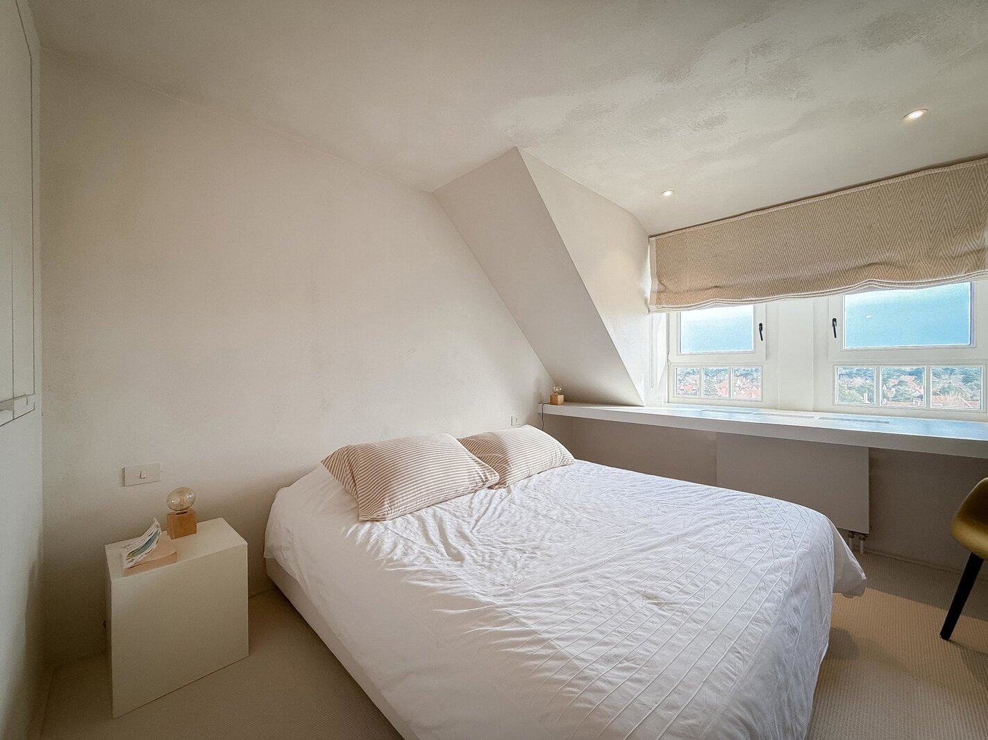 In hartje Zoute, omringd door exclusieve winkels, bevindt zich dit luxueuze en minimalistisch ingerichte duplexappartement. Afgewerkt met hoogwaardige materialen, straalt het een tijdloze elegantie uit. Renovatie door "Nathalie Deboel Interior Design". De grote raampartijen laten overvloedig daglicht binnen en bieden een adembenemend uitzicht op de prachtige villa’s van het Zoute.
