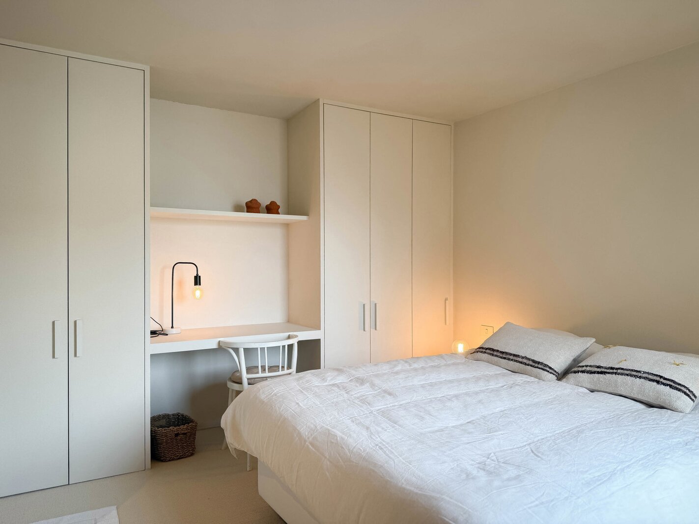 Op de verdieping bevinden zich drie ruime slaapkamers, elk voorzien van op maat gemaakte ingemaakte kasten. De master bedroom beschikt over een luxueuze badkamer, terwijl een extra douchekamer extra comfort biedt. Privatieve kelder.
