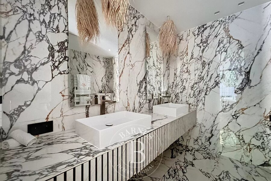 Het slaapgedeelte bestaat uit 2 slaapkamers met kleedruimtes en en-suite doucheruimtes,