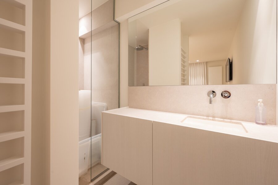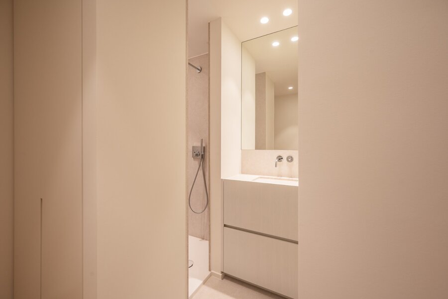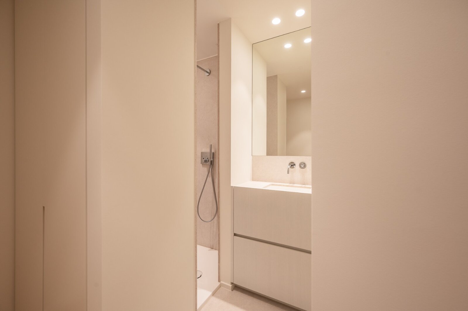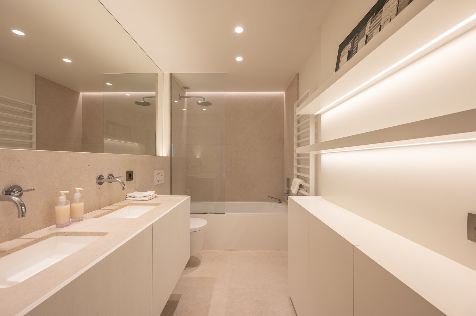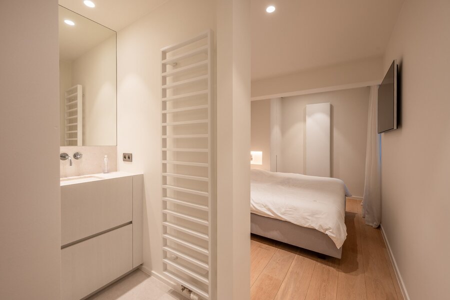 Dit appartement omvat inkomhal met vestiaire en gastentoilet. Lichtrijke, zeer ruime woonkamer uitgevend op het terras. Top-ingerichte keuken met alle comfort.3 volwaardige slaapkamers, elk met veel ingemaakte kasten. Iedere slaapkamer heeft zijn eigen sanitaire ruimte (bad-douchekamer). Apart toilet. Berging met mogelijkheid tot plaatsen wasmachine. Privatieve kelder en gemeenschappelijk fietslokaal in de residentie. Gunstig EPC! Concierge.