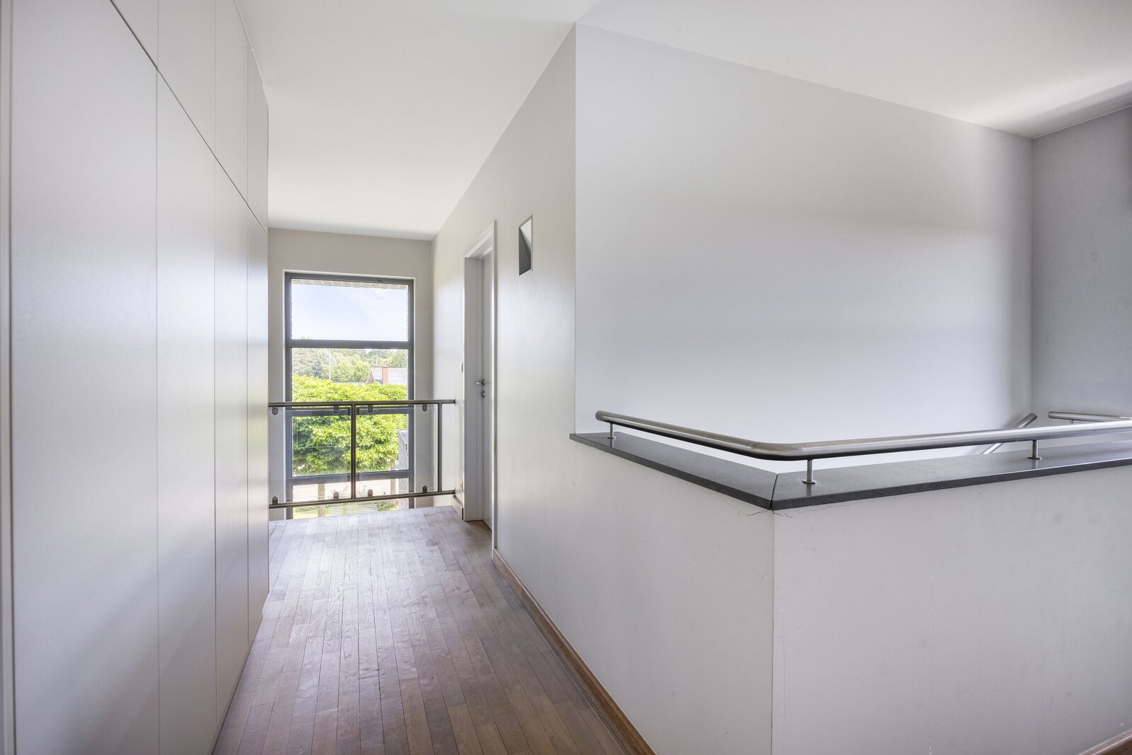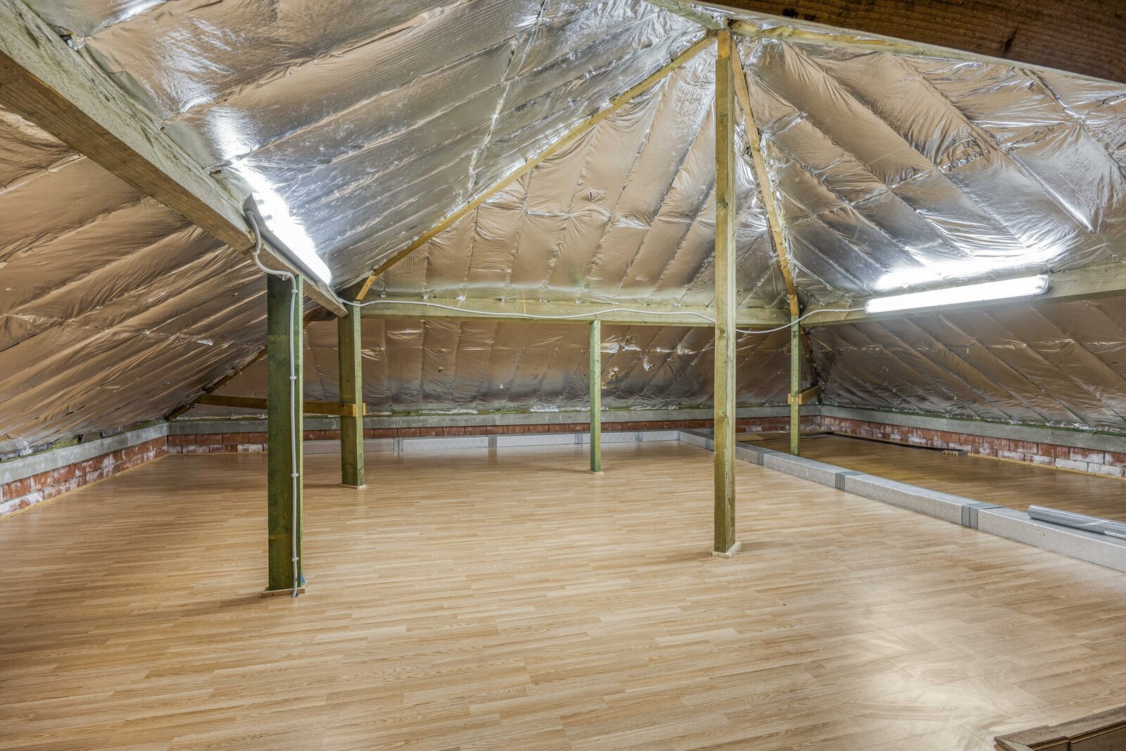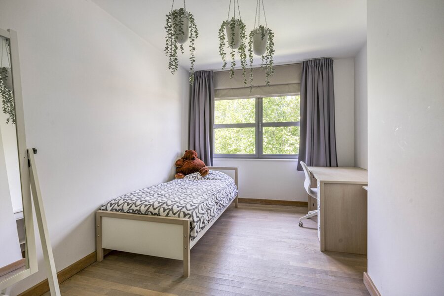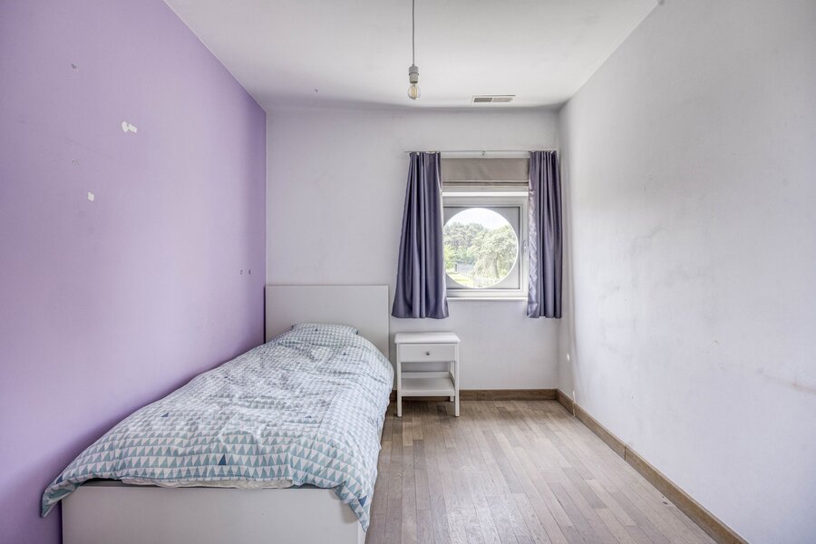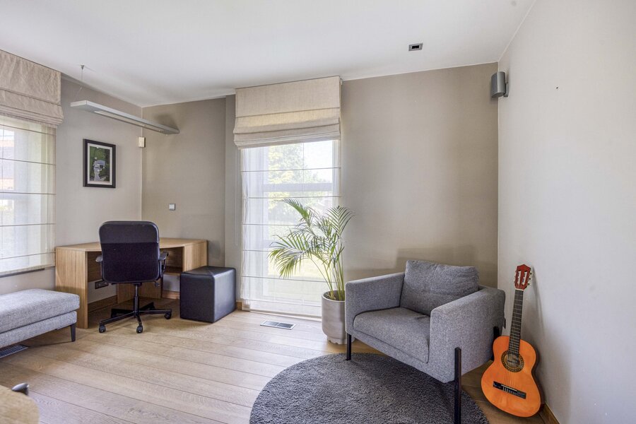 Op de eerste verdieping bevinden zich vier slaapkamers waarvan één met een eigen dressing. Allen beschikken ze over parketvloer en ingemaakte kasten. De badkamer is uitgerust met een ligbad en een aparte douche. De zolder biedt extra ruimte en mogelijkheden, al is deze nog niet afgewerkt. De woning is volledig onderkelderd en biedt dus een zee aan ruimte, ideaal voor grote gezinnen, of het uitoefenen van een bijberoep.