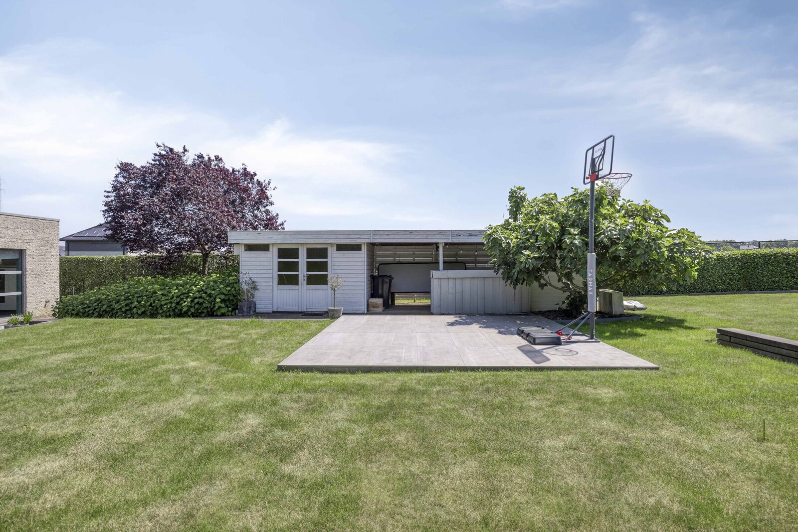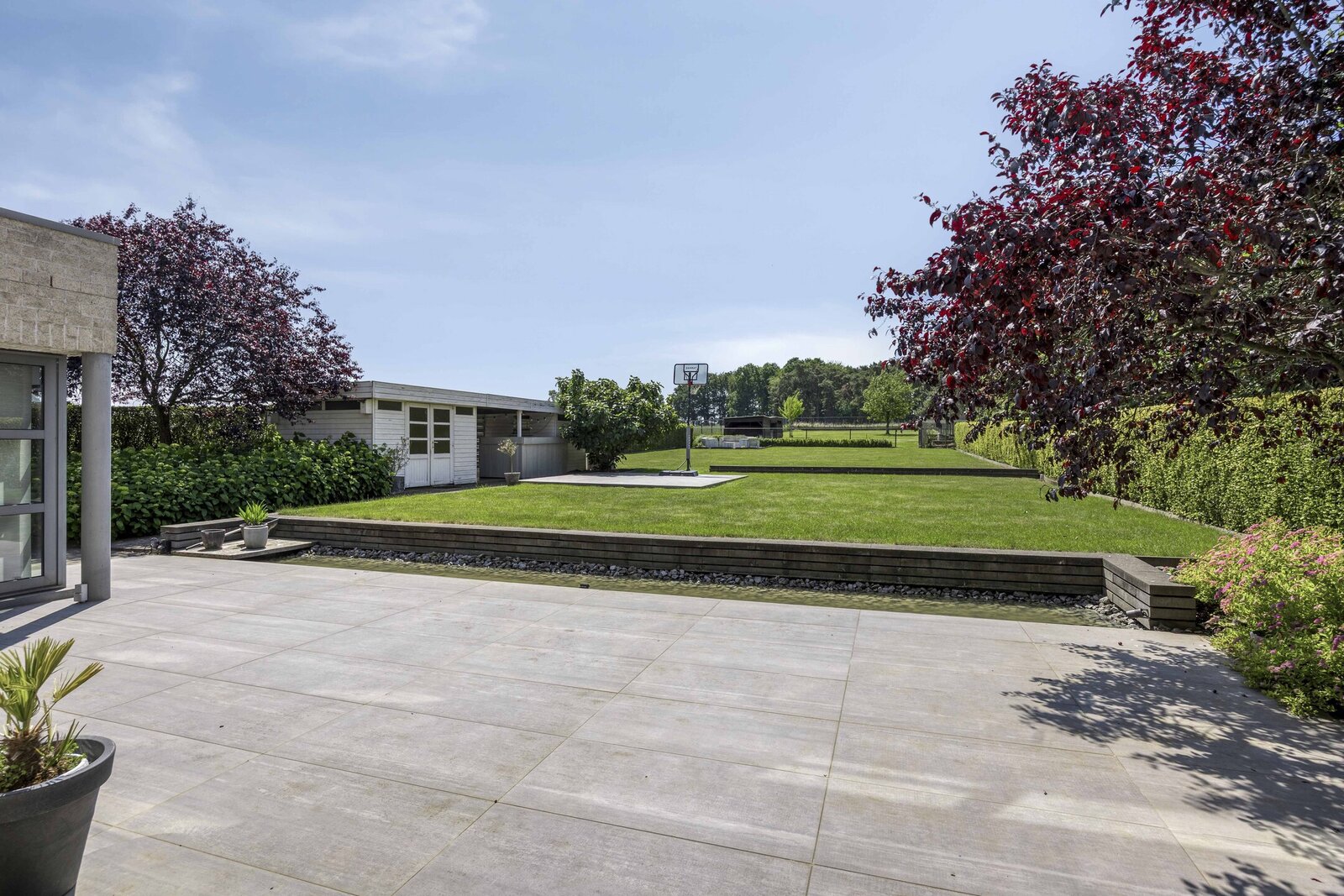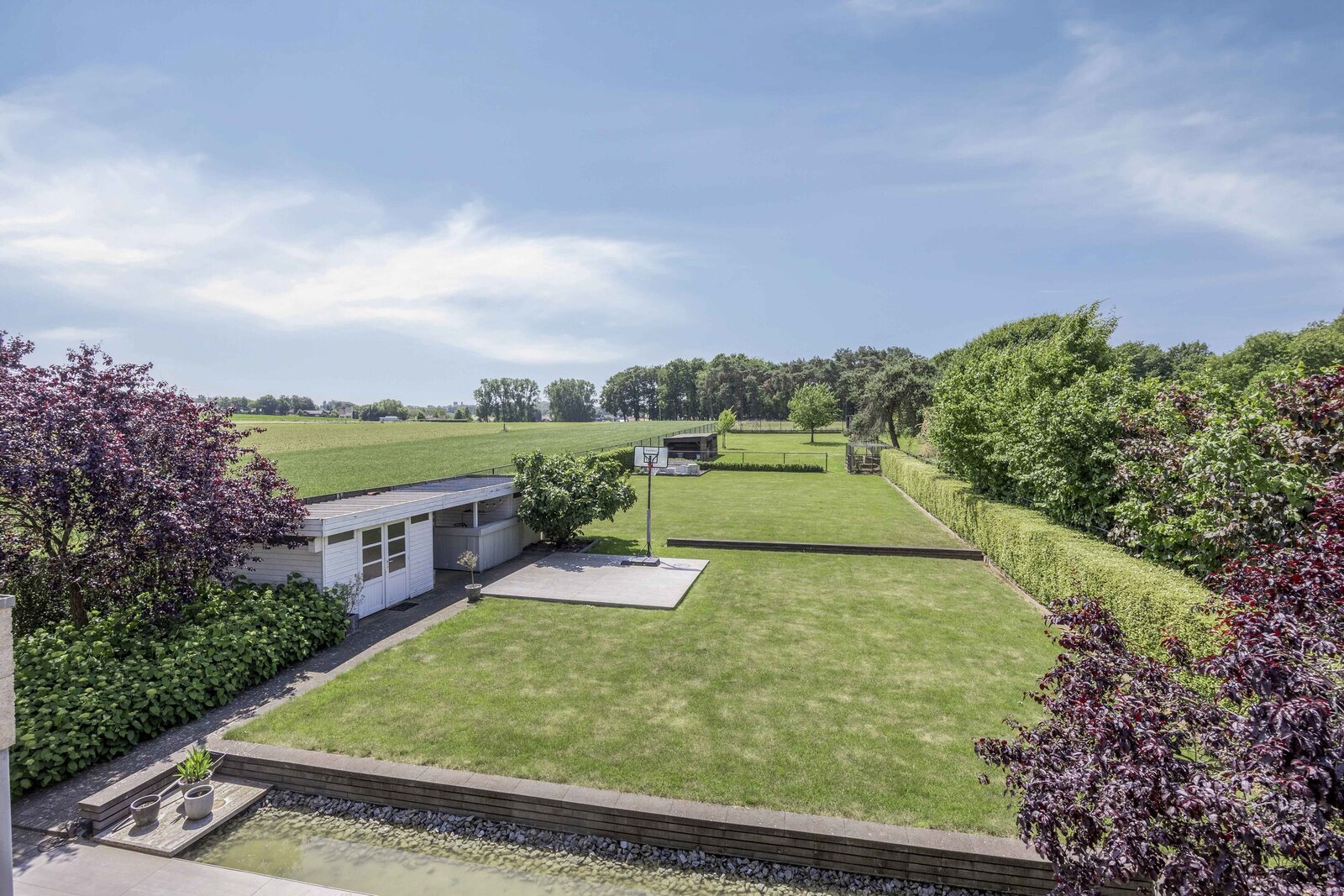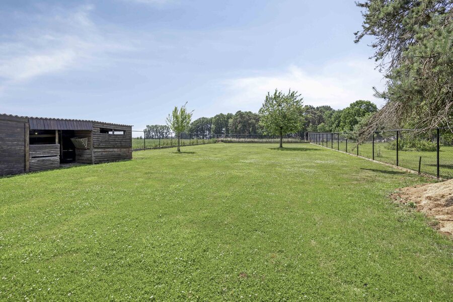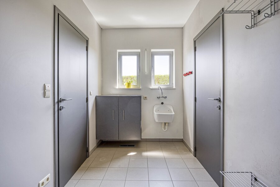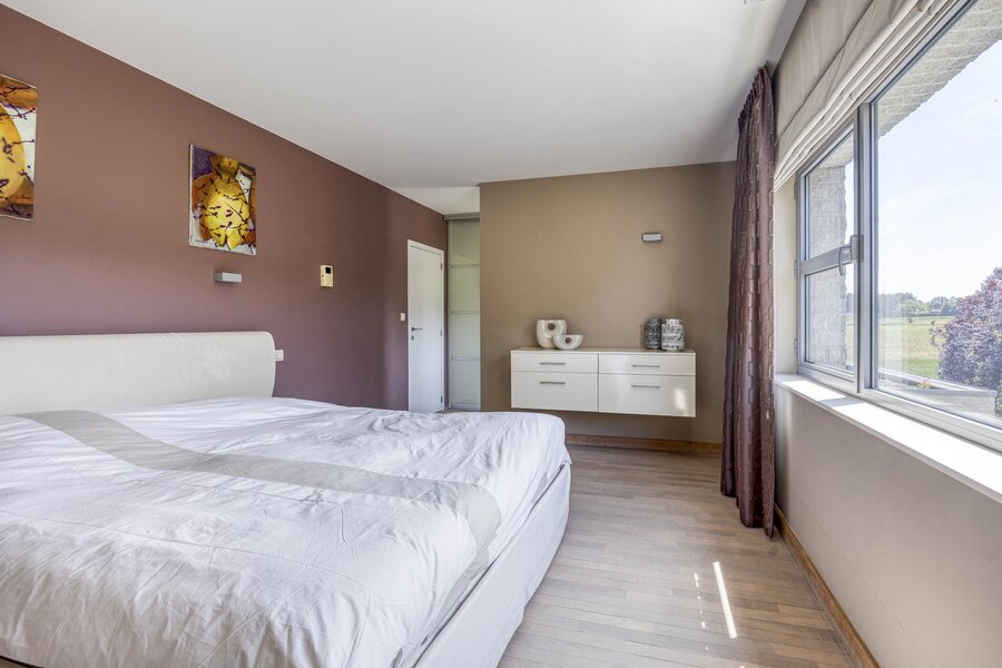 In elke kamer is airconditioning voorzien. Buiten geniet je van een nieuw aangelegd terras (2021) met keramische tegels en een diepe, groene tuin die uitkijkt over de velden. De regenwaterput draagt bij aan duurzaam watergebruik.
