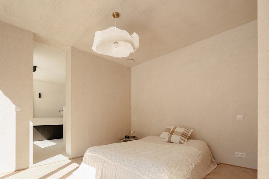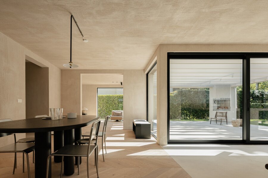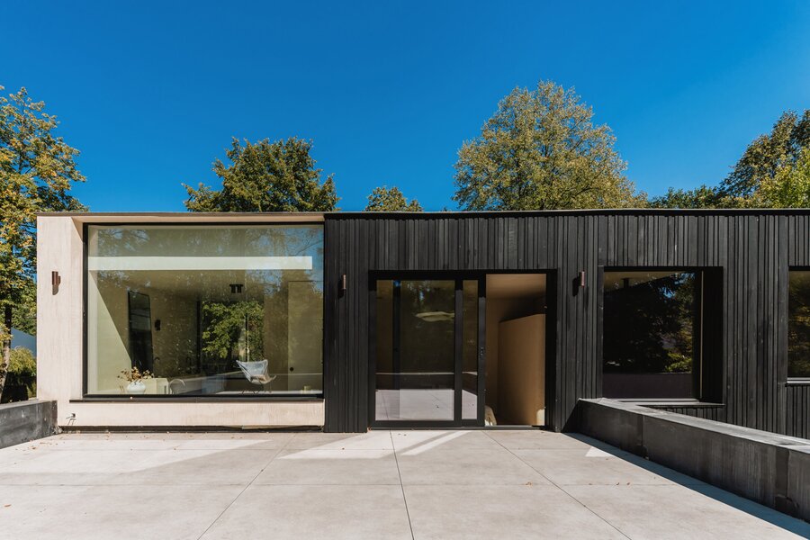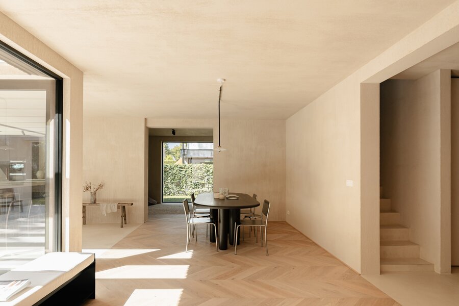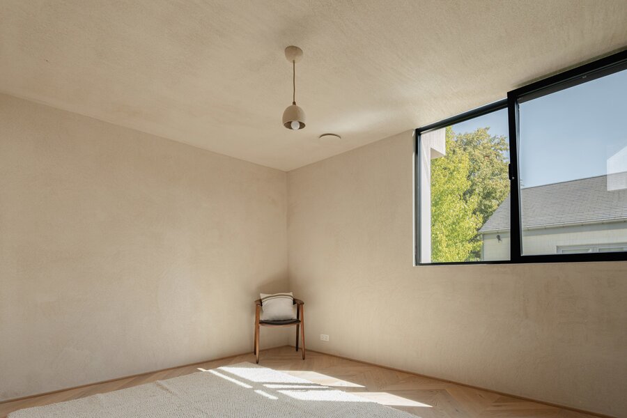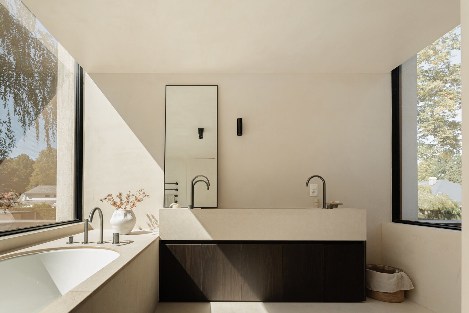 Overal in huis vallen de hoogwaardige materialen op: houten gevelbekleding, zachtgerookt hout in de keuken, natuurstenen tegels in de badkamer... Niks werd aan het toeval overgelaten.