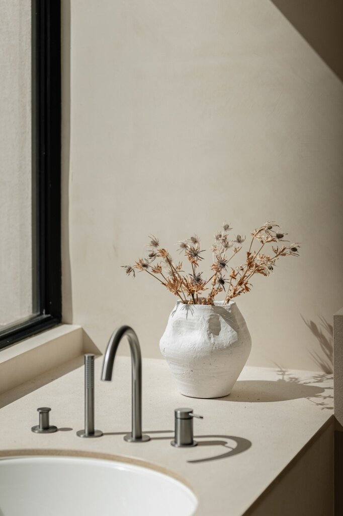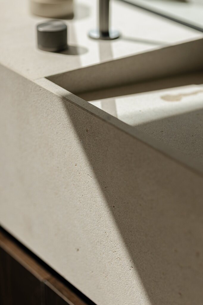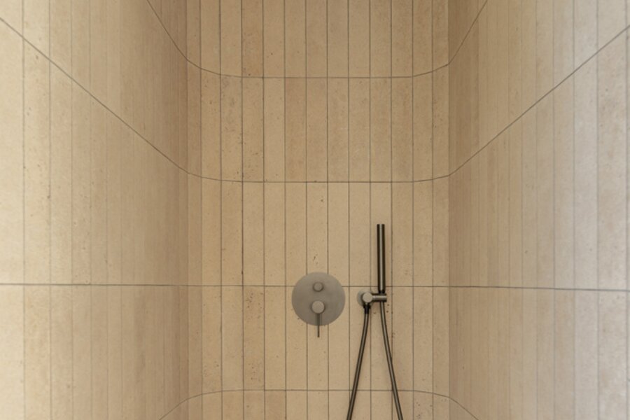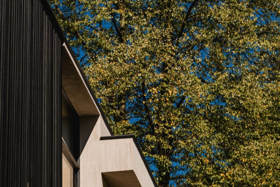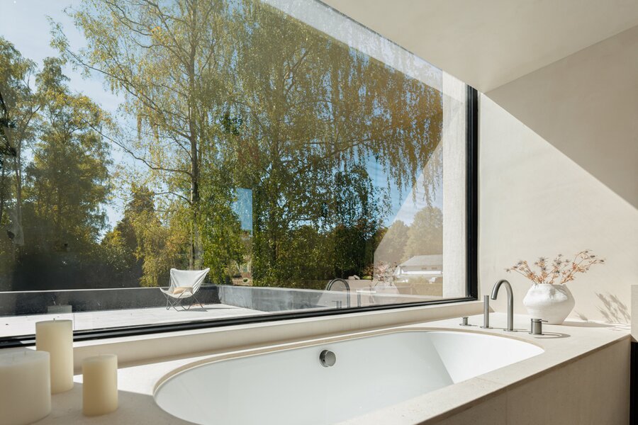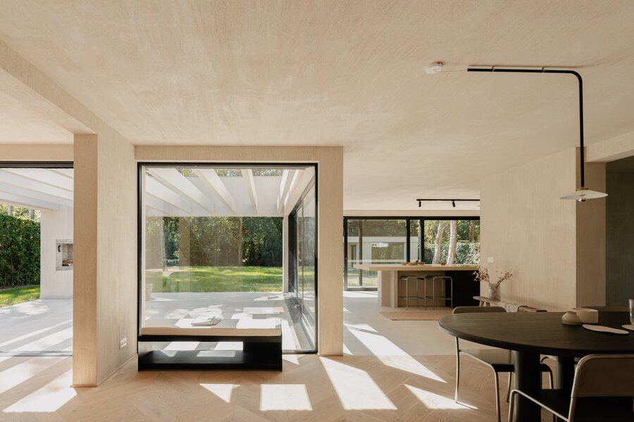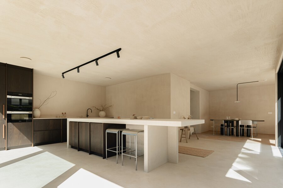 Overal in huis vallen de hoogwaardige materialen op: houten gevelbekleding, zachtgerookt hout in de keuken, natuurstenen tegels in de badkamer... Niks werd aan het toeval overgelaten.