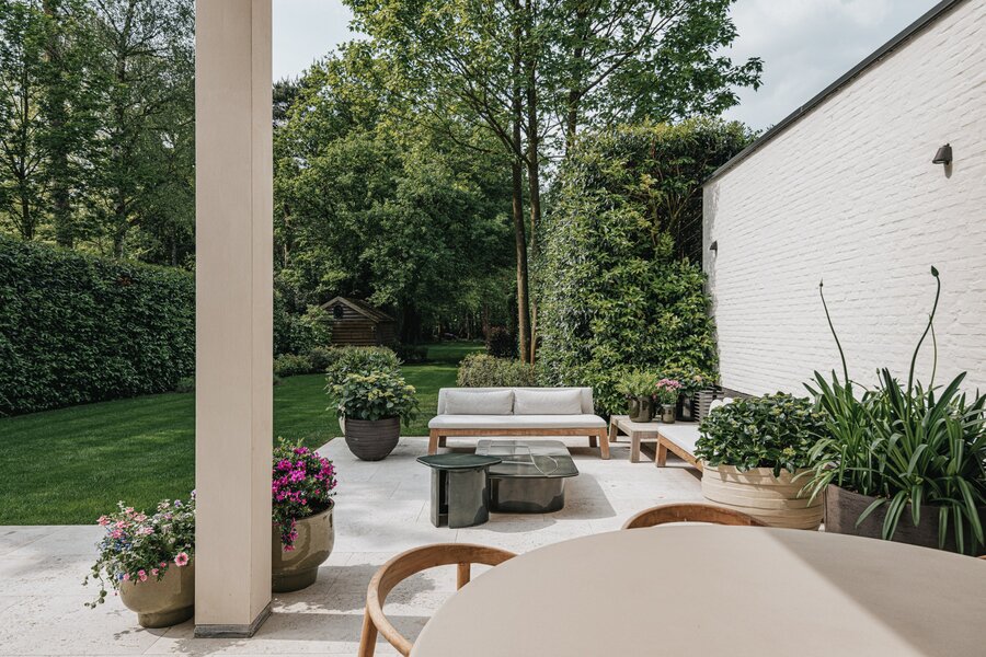 Op een boogscheut van het centrum staat deze hedendaagse woning met ca. 1400m prachtig aangelegde tuin.