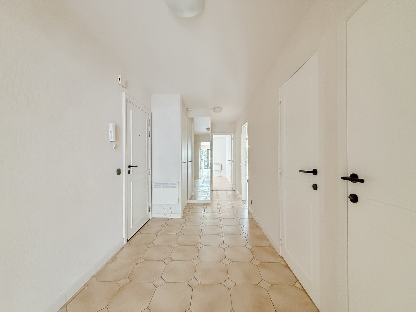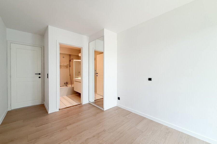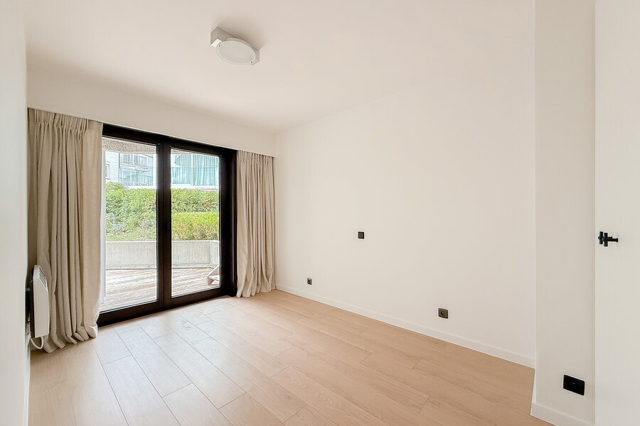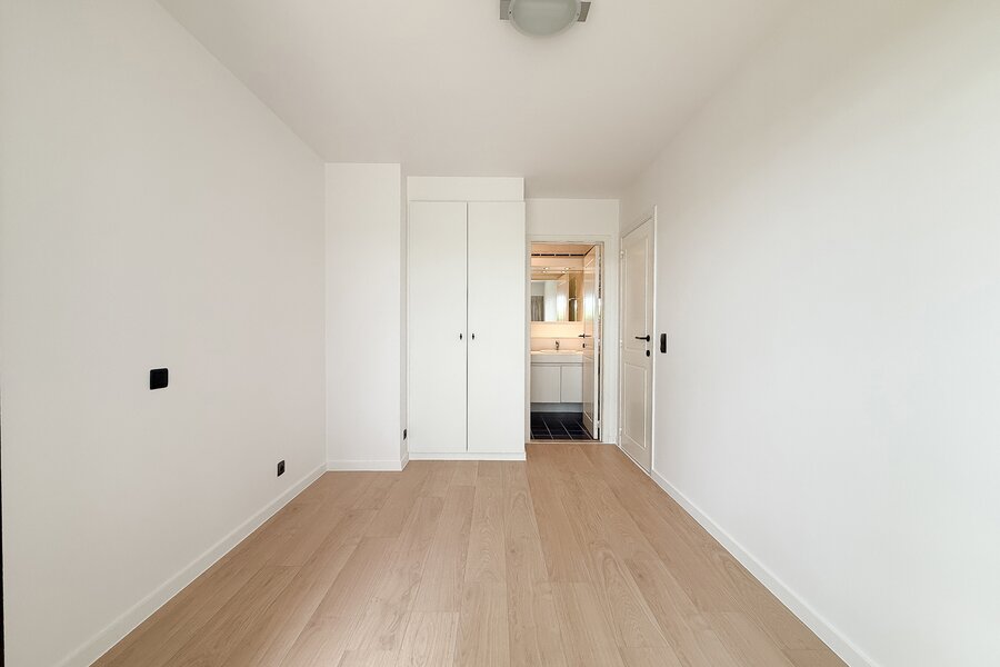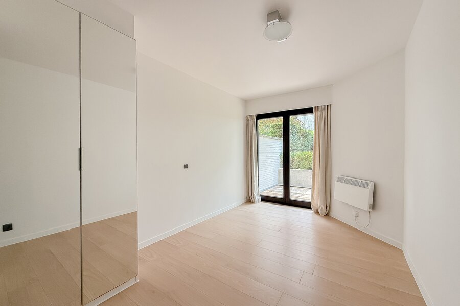 Aan de achterzijde bevinden zich twee slaapkamers, beide met een eigen bad- of douchekamer en toegang tot een privéterras. Daarnaast is er een apart zonneterras, perfect om van de zon te genieten.