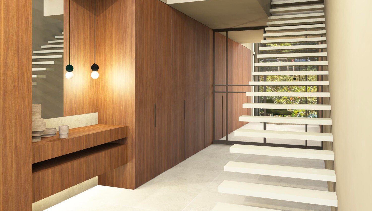 Villa Delicia verwelkomt u met een lichtrijke inkomhal met indrukwekkende vide, een gastentoilet en een exclusieve huislift. De aangrenzende riante woonkamer met open keuken en gezellige zithoek baadt eveneens in het natuurlijke licht, dankzij een imposante vide die zorgt voor een open en luchtige sfeer. Vanuit de leefruimte stapt u zo het deels overdekte terras op, de ideale plek om te genieten.Op de benedenverdieping vindt u ook een praktische wasruimte en een ruime dubbele garage.
