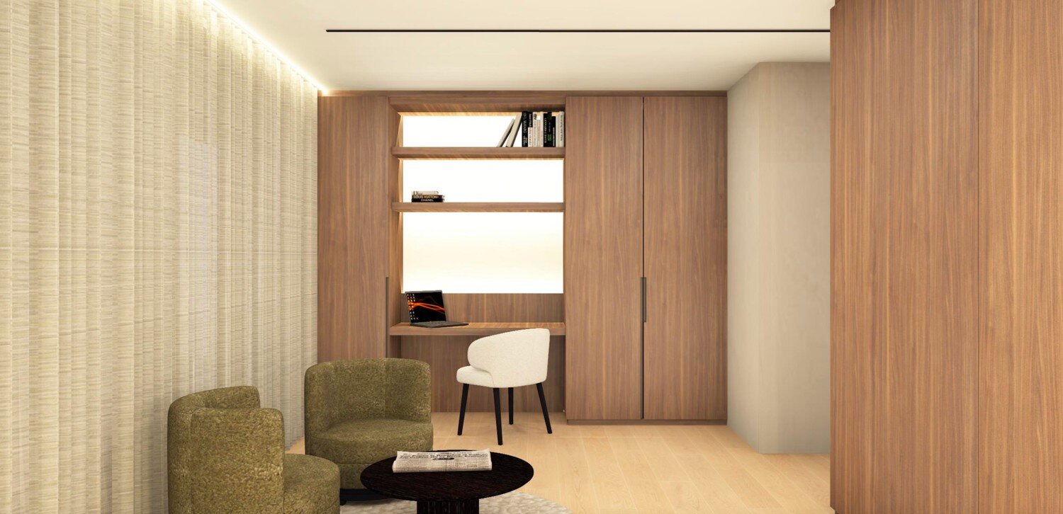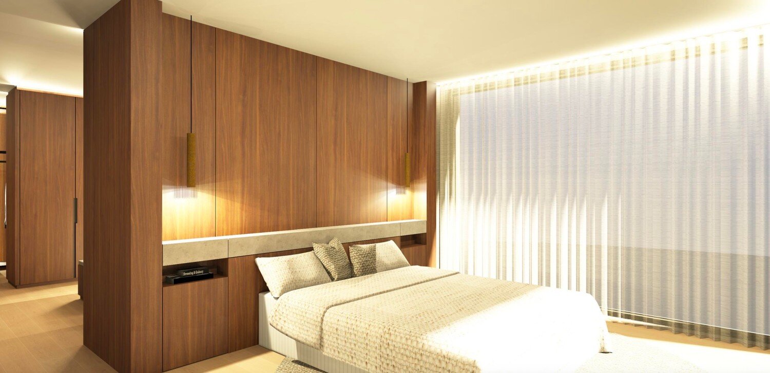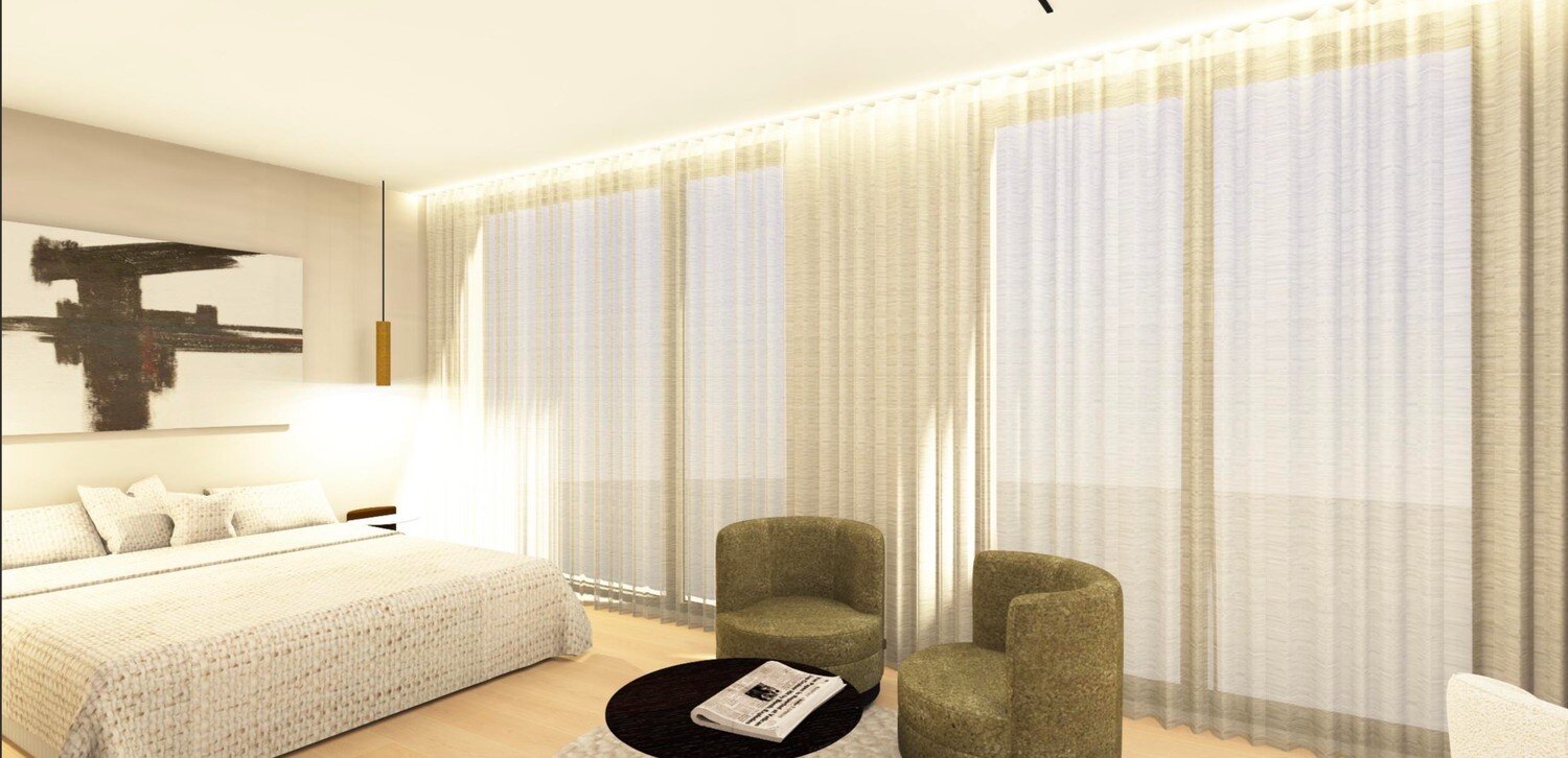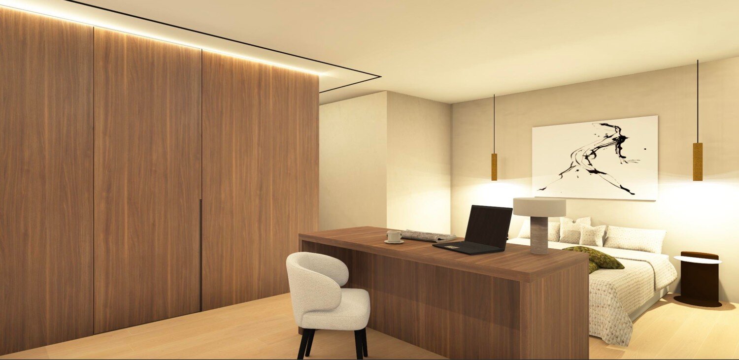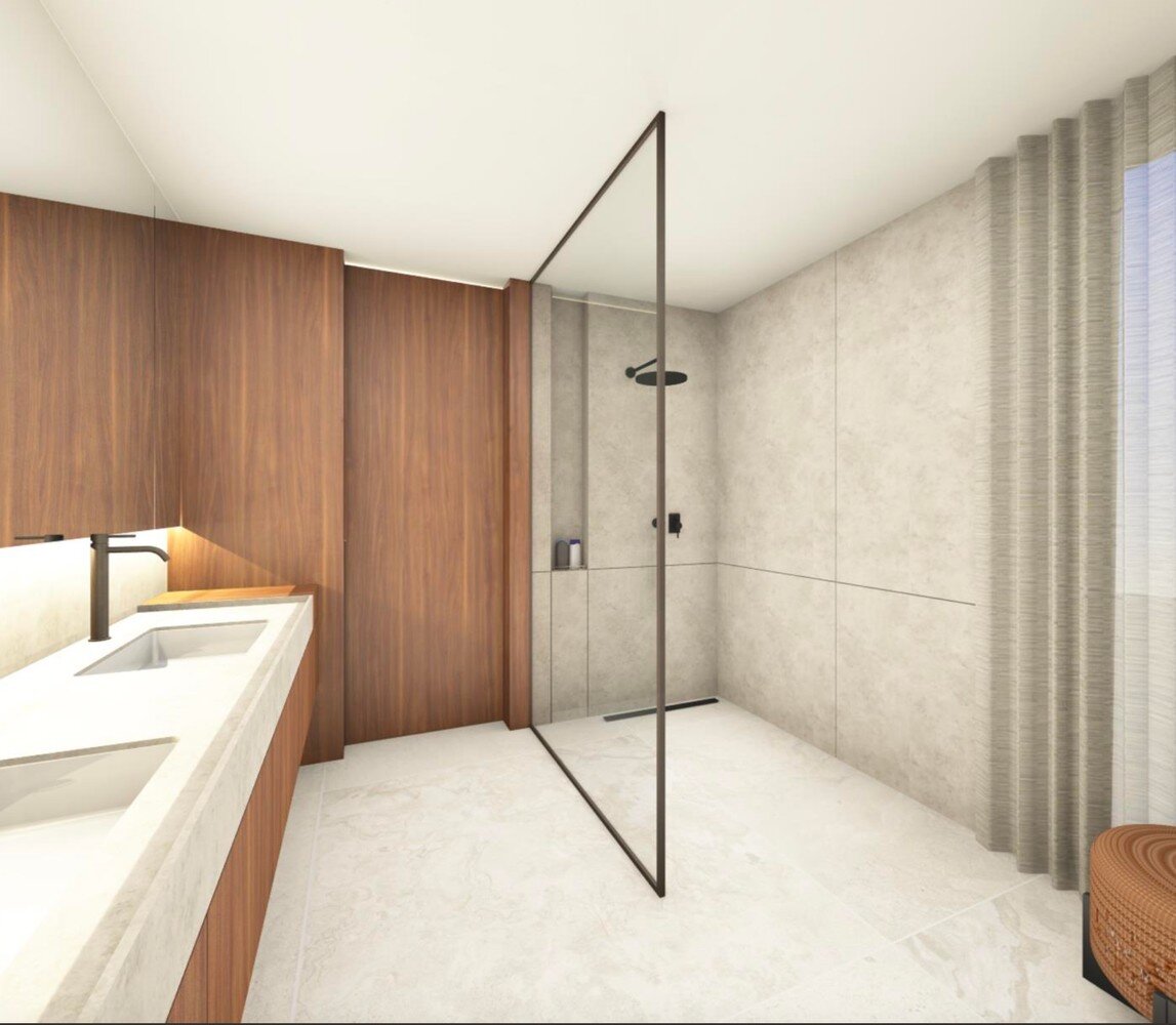 De bovenverdieping biedt een royale nachthal met plaats voor een bureau en een nachttoilet. Dankzij de vide’s in de inkomhal en woonkamer is er een aangename visuele en ruimtelijke verbinding tussen de verdiepingen. Aan de voorzijde van de villa ligt de mastersuite, compleet met een ruime dressing en een luxueuze ensuite badkamer. Aan de andere zijde bevinden zich nog 2 ruime slaapkamers die toegang hebben tot een gedeelde badkamer.