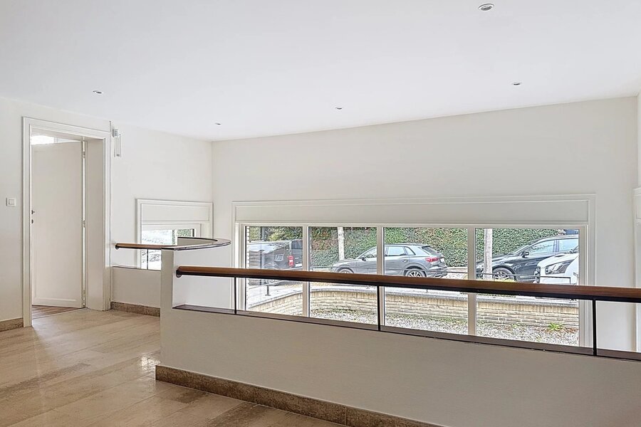 Op de verdiepingen bevinden zich 5 ruime slaapkamers en 3 elegante badkamers. Functionele ruimtes vervolledigen het geheel: kelders, wasruimte, parkeerplaats en opbergruimte.