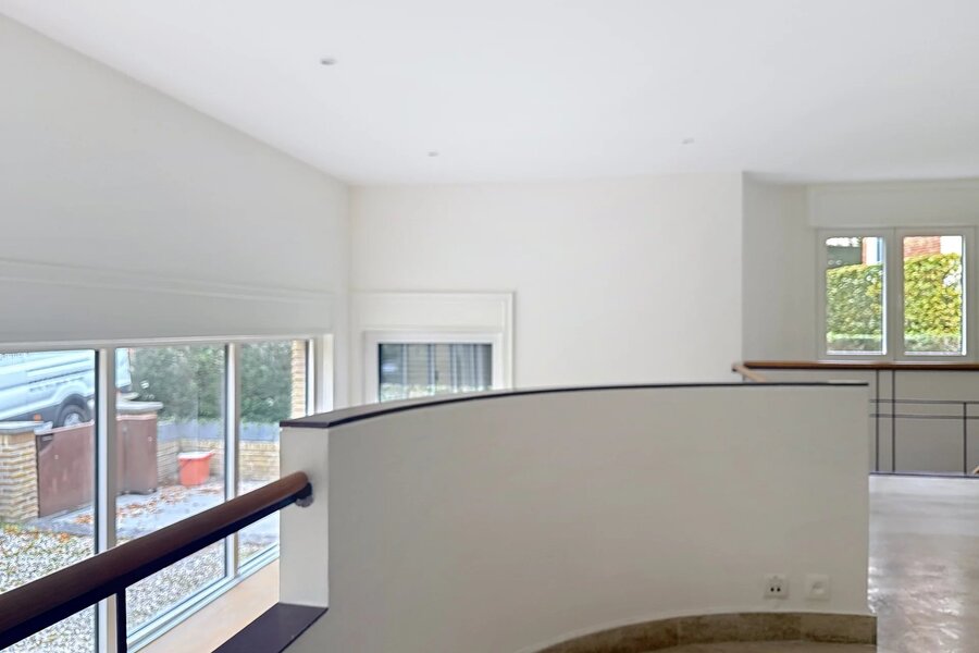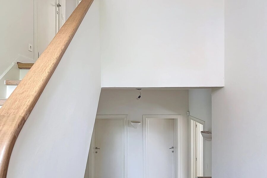 Opgetrokken in de jaren 30, illustreert deze woning perfect de Art Deco-architectuur met haar strakke geometrische lijnen, evenwichtige volumes en verfijnde afwerkingen. Bourgondische natuursteen en massief houten parket benadrukken de tijdloze elegantie, terwijl de originele smeedijzeren details, grote raampartijen en de stijlvolle centrale trap het unieke karakter van het pand onderstrepen.